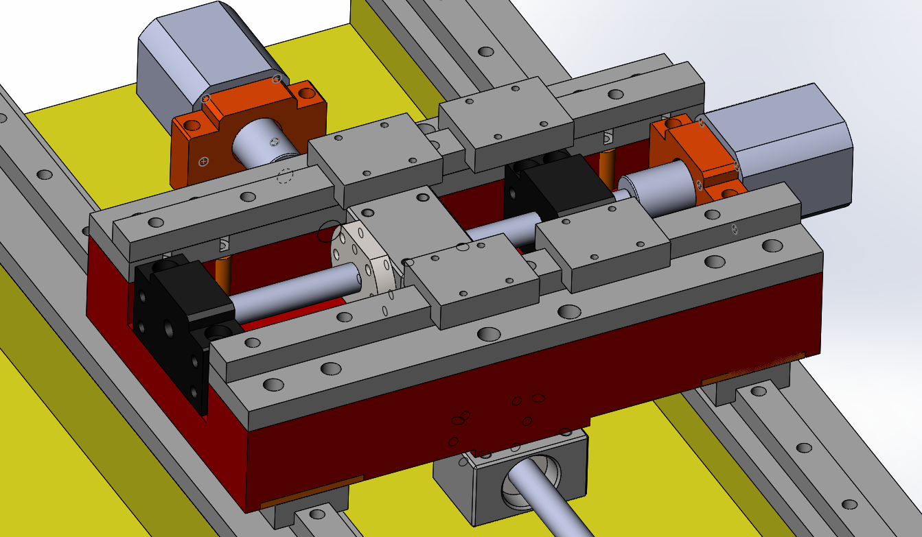 Оранжевым цветом показаны 3D печатные детали (крепления двигателей, закладные под сквозные отверстия в станине).