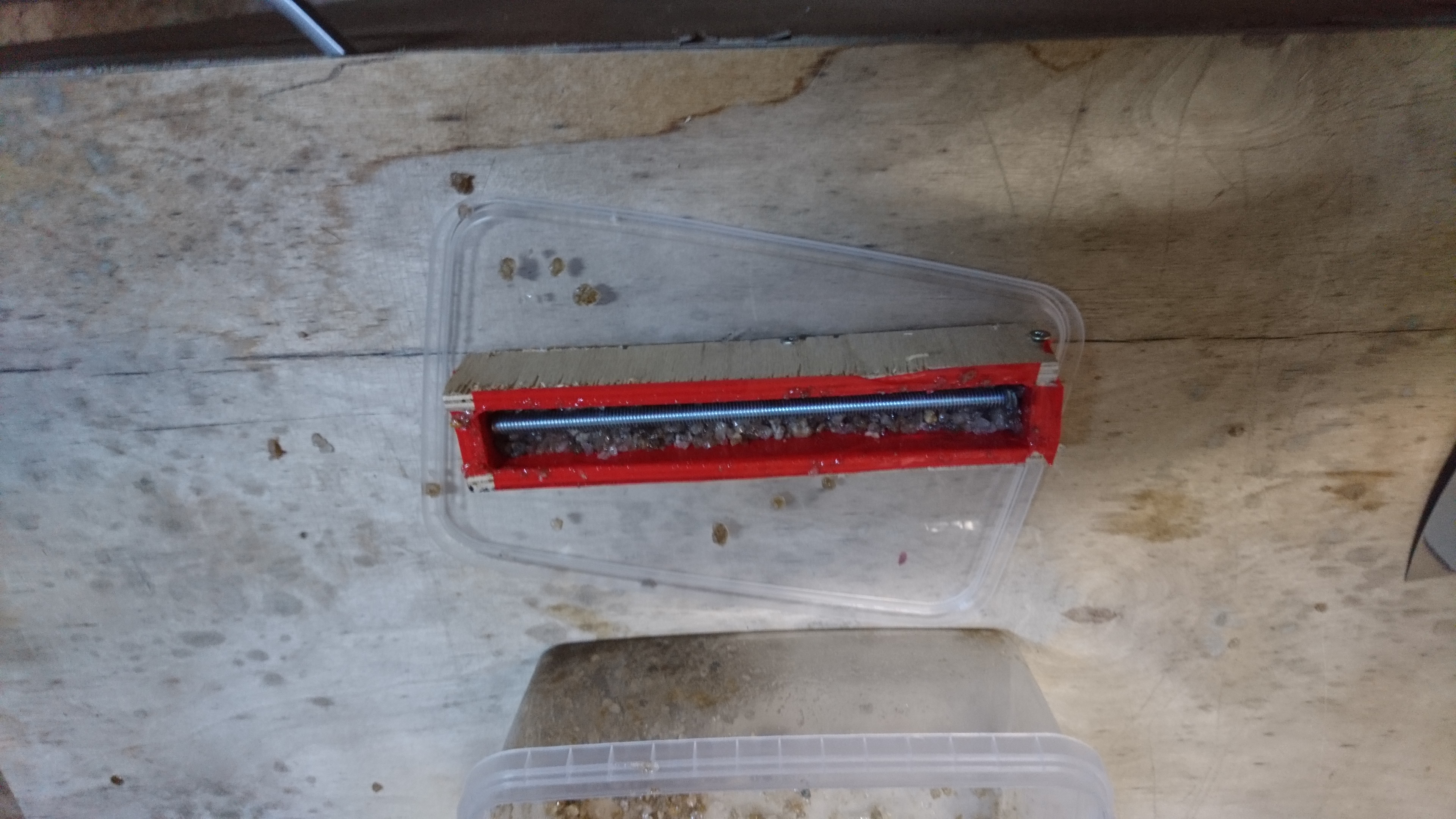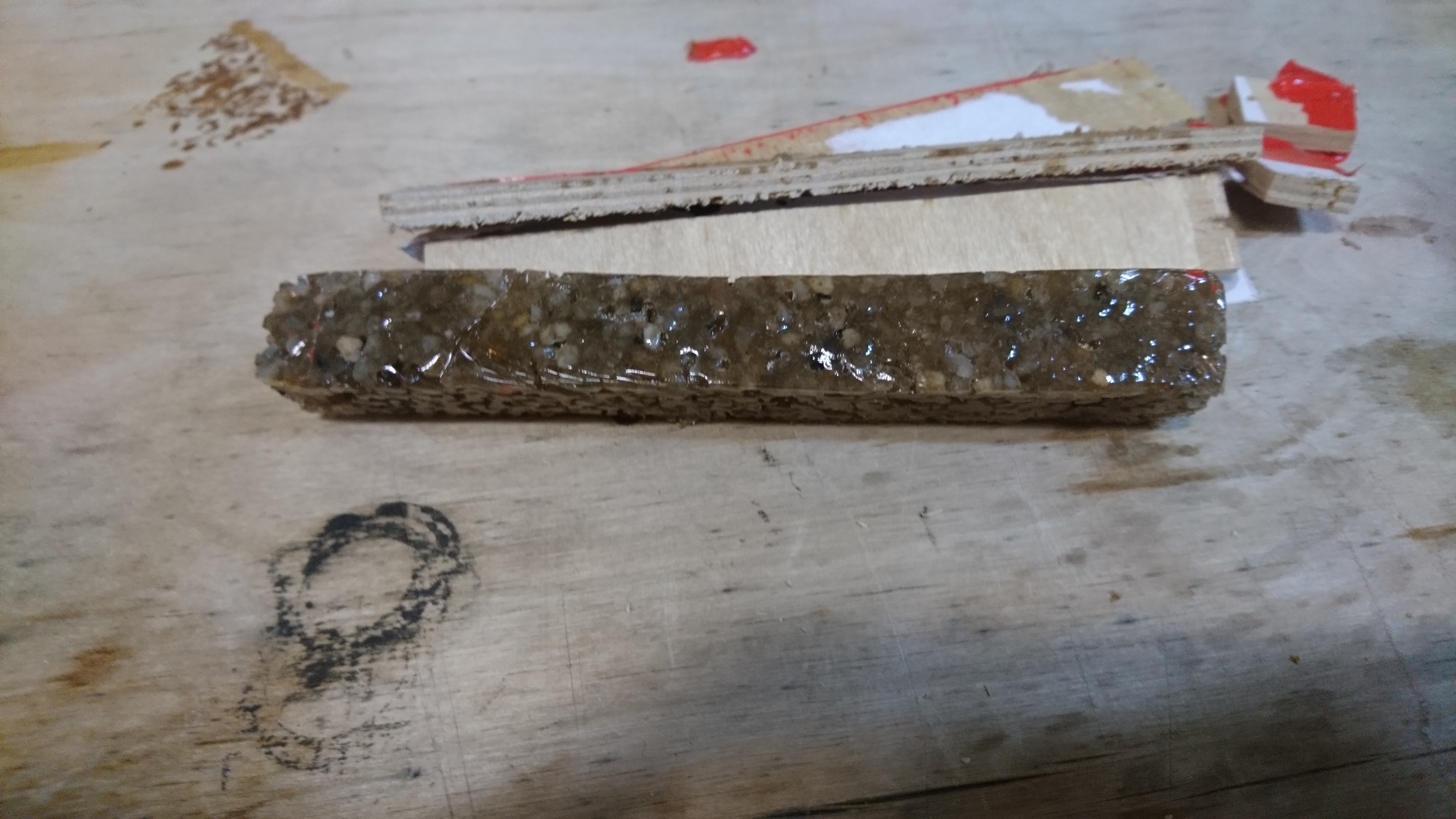 Планирую в это воскресенье провести тестовую заливку - маленькой "балочки" 150х20х20 со шпилькой М3-М4 в центре (как на рисунке). Попробую как застынет и наберёт прочность на изгиб-кручение-слом.