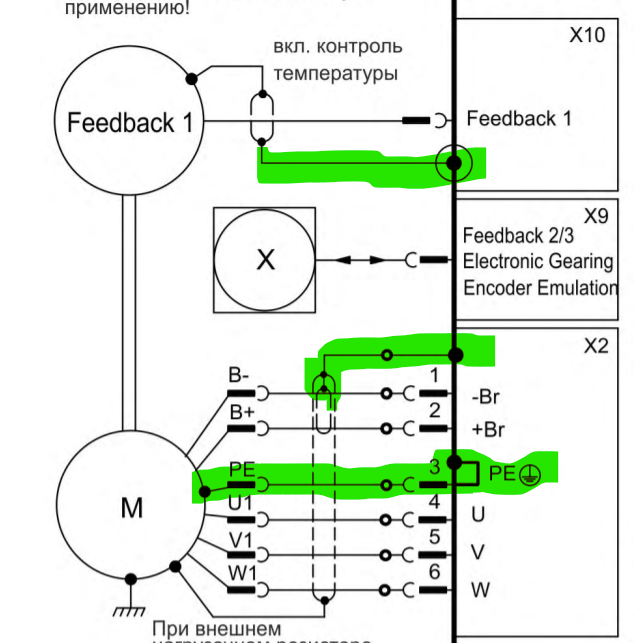 Кинул со станины зануление, ну светится менее ярко. С корпуса мотора на точку зануления на станине. С сервопака на точку заземления на станине.