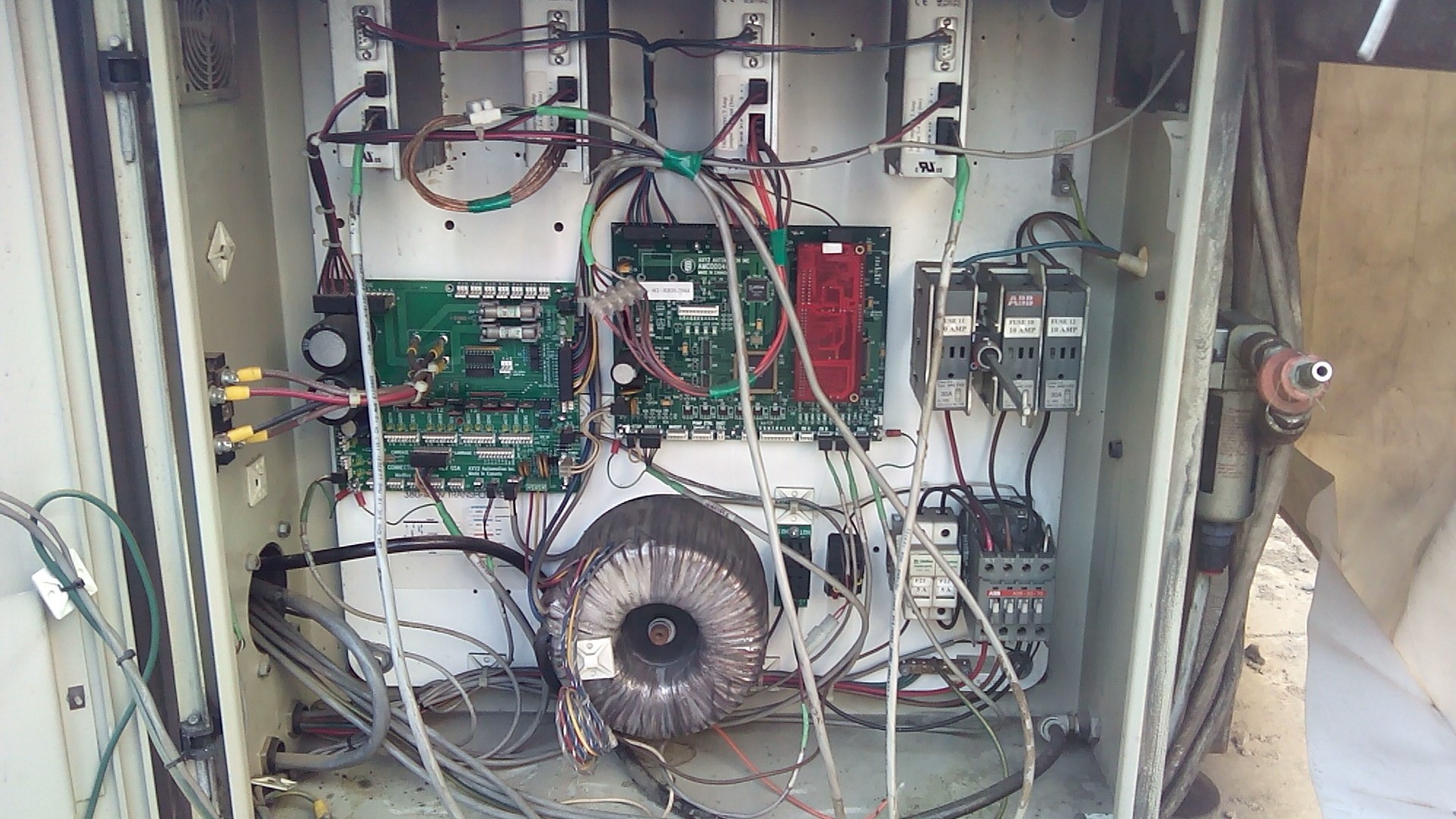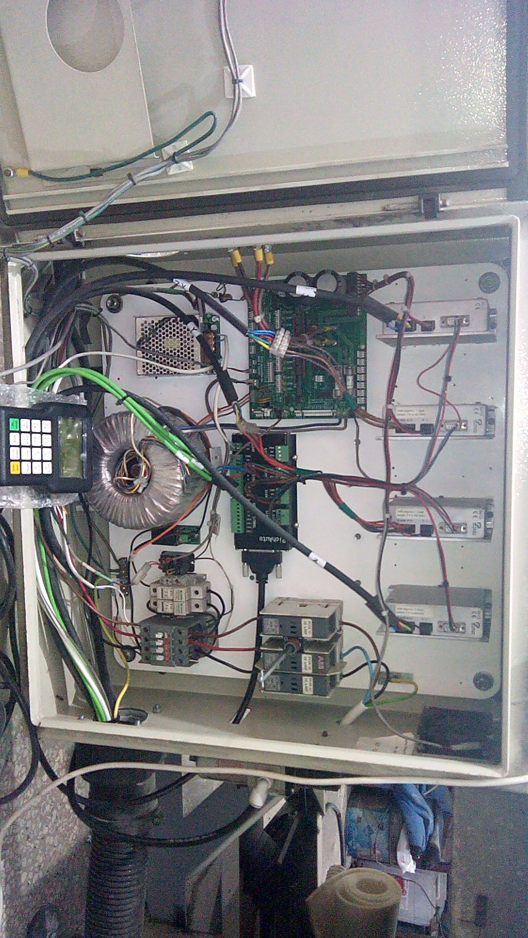 После пожара, на работе, пострадала от температуры наружная электроника станка.