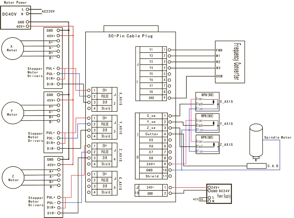 Правый кабель: к шпинделю.