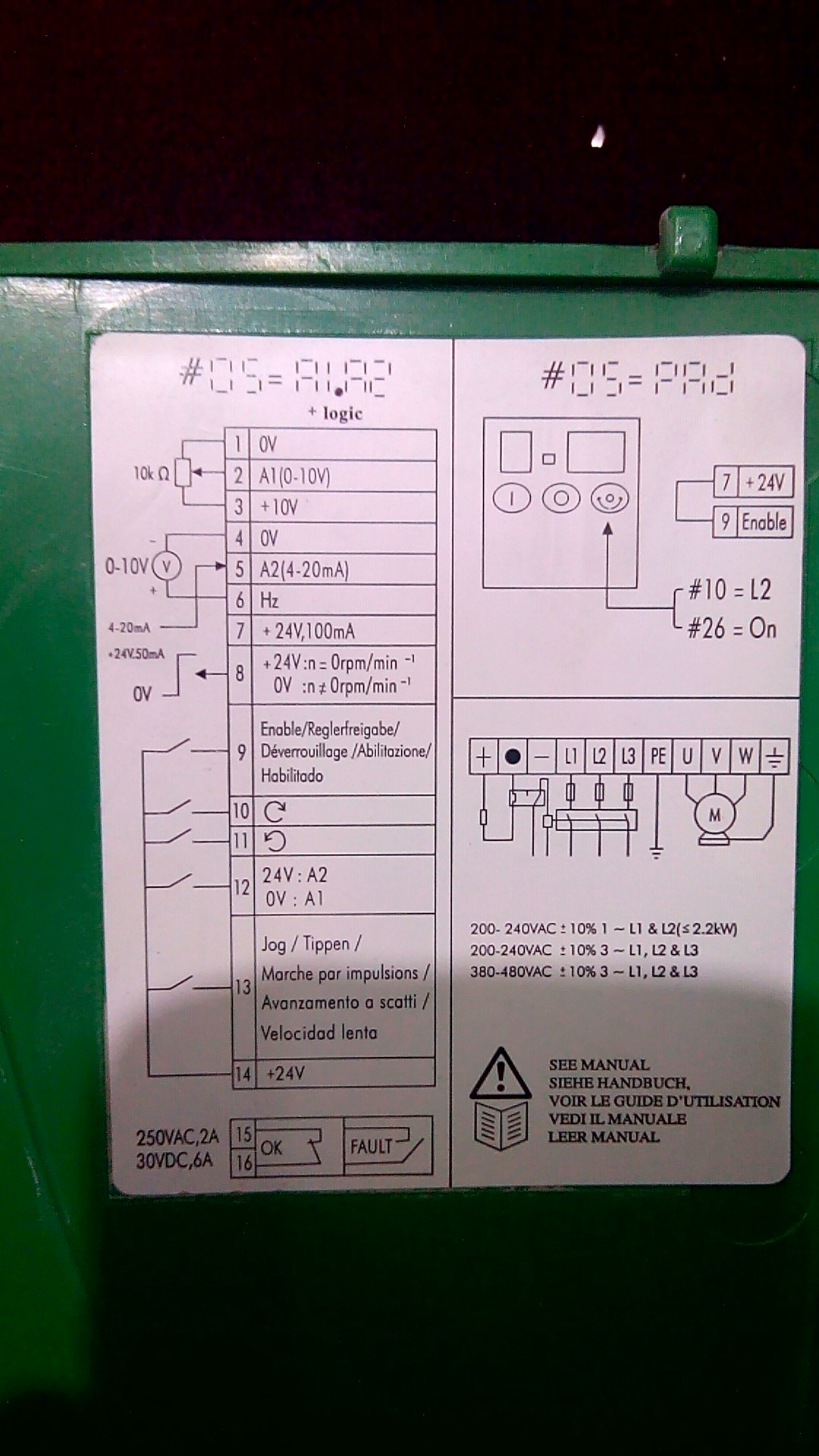 Схема на крышке частотника