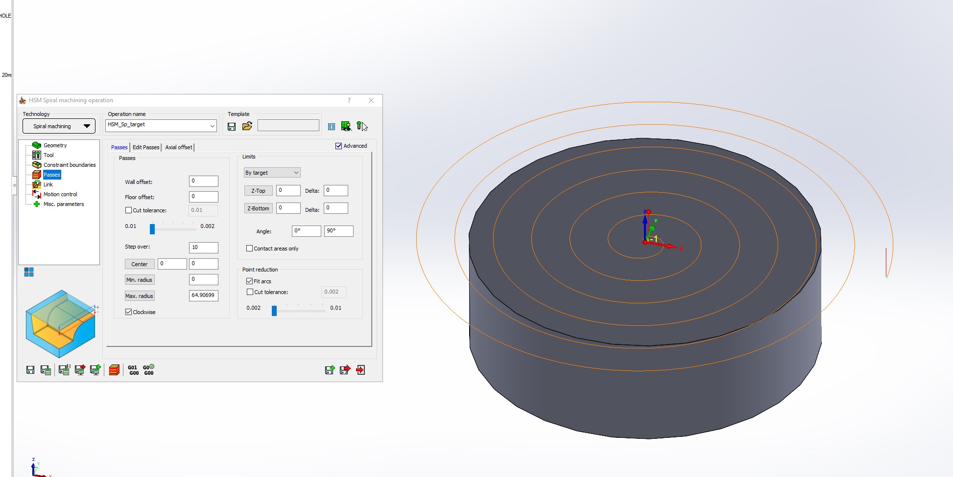 и потом если обходить по кругу - верхняя часть куда улетит - ее же никак не закрепишь да и нет содящейся к центру спирали в солидкаме - я не нашел по крайней мере.