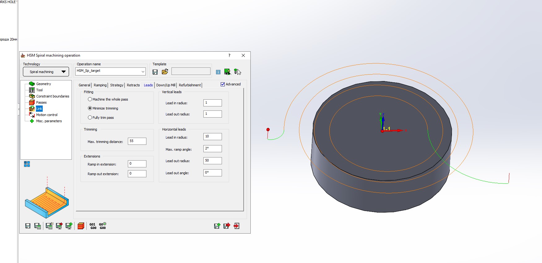 В этом и суть, иногда нужно чтобы вход и выход был со смещением тоже. Если использовать стандартный вход и выход Солидкама, то он делает вход и выход только для первой траектории, для остальных входа нет и фреза врезается. У меня так в 2019