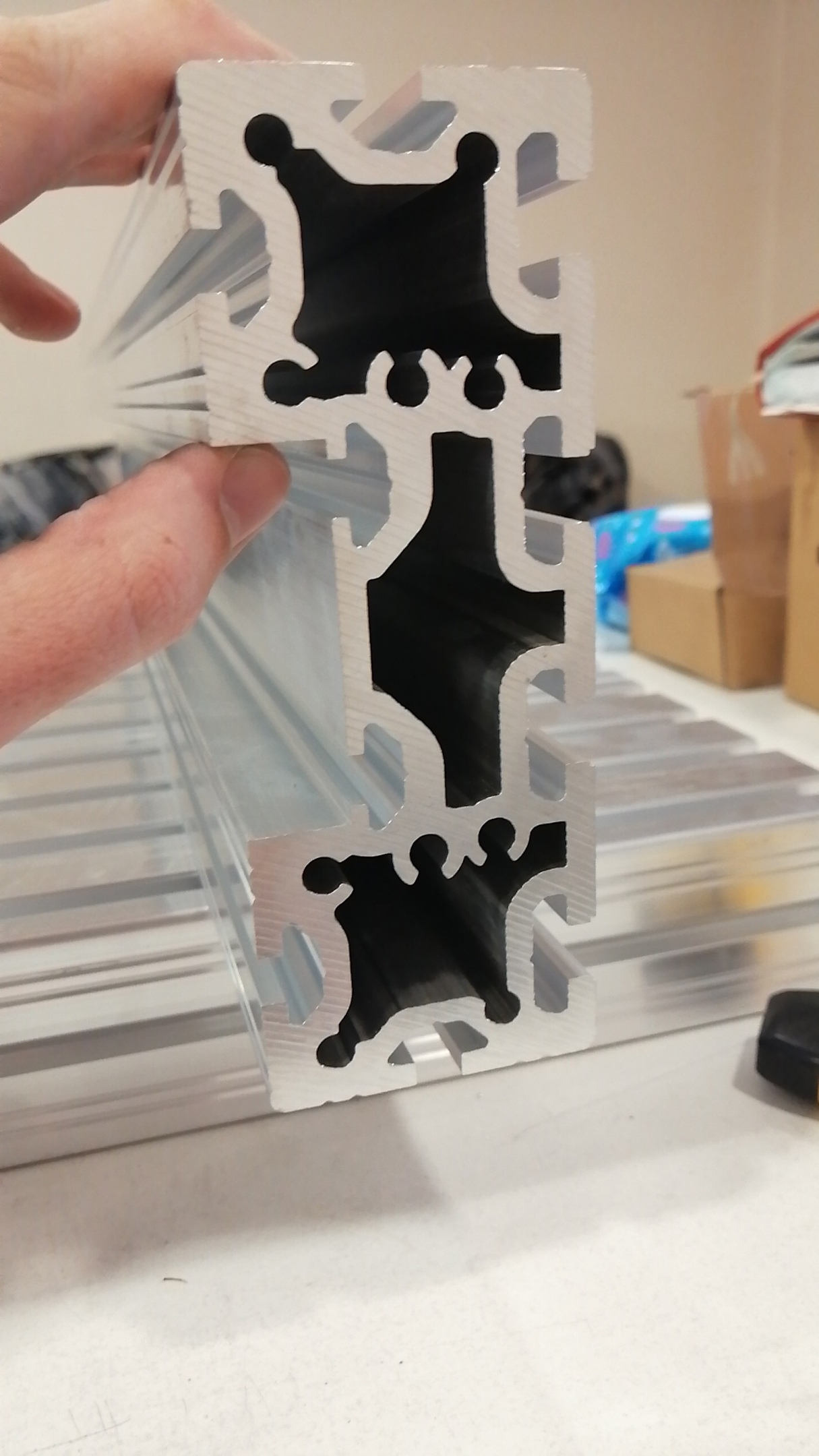 Я у себя планирую кабель канал по правому пазу пустить, даже 38 мм радиус должен проходить внизу, боковины дают достаточно высоты. Плюсом идет защита от стружки. Хотя мне с некомфортным перегибом проще, у меня шпиндель с воздушным охлаждением. До завершения мне достаточно далеко, станок собираю на коленке, в реальном понимании этого слова. Этот профиль дает такую возможность, все сопряжения можно сделать шуруповертом на коленке.