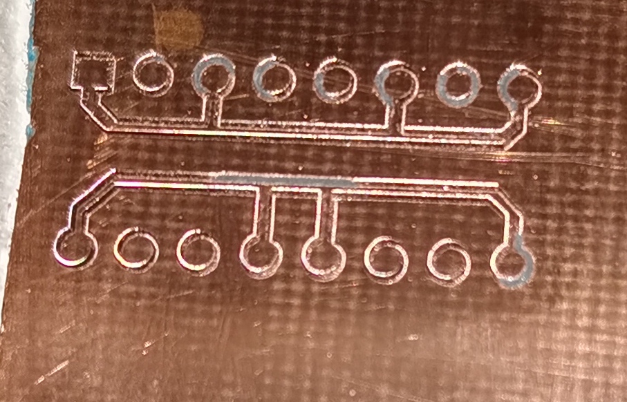 Судя по фотке (кружочки по линии реза, как от концевой фрезы) или гравер тупой или кончик гравера описывает окружность (биение) + есть смещение по У... По моему мнению, для такой мелочи нужен очень жесткий станок и без люфтов...DrobyshevAlex писал(а): ↑ Фигня выходит...