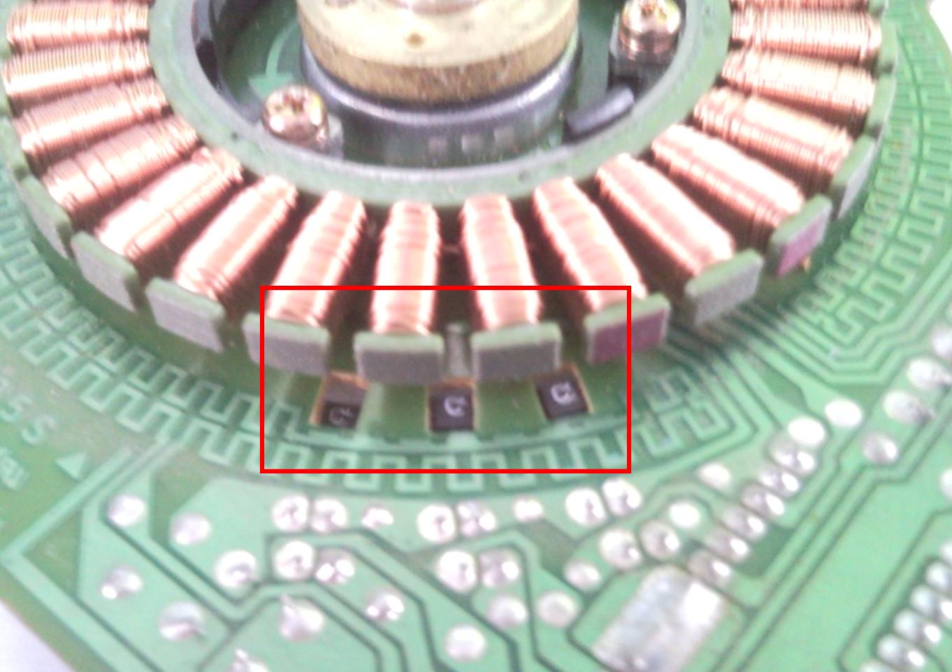 Это датчики Холла, реагируют на магнитное поле, только не катушек (от них они специально отнесены подальше, аж в плату заглублены), а многополюсного постоянного магнита дискового ротора, которого на фото нет. Управляют коммутацией тока в катушках, вместо коллектора в коллекторных двигателях. К шпинделю - можно, наверно, но только вместе с ротором.