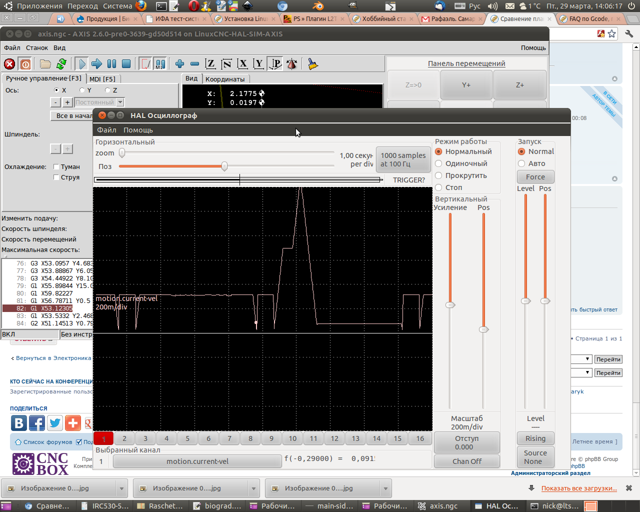 Свой первый станок сделал еще в 2005 году, на то время Мач и ЛПТ рулили. В 2008 году построил взрослый станок на шаговиках с Геками и был одним из первых тестеров ncPod. В этом году перешел на сервы и сейчас стою перед выбором контролера, а скорее даже хорошего софта под него. Работаю с печатями, поэтому очень важна точность следования по траектории. Материалы мягкие, поэтому скоростя можно поднимать легко. Уперся в софт, так как Мач начинает косячить на углах. Посмотрел видео в соседней теме про kFlop и просто опупел. Просто хочется плакать...