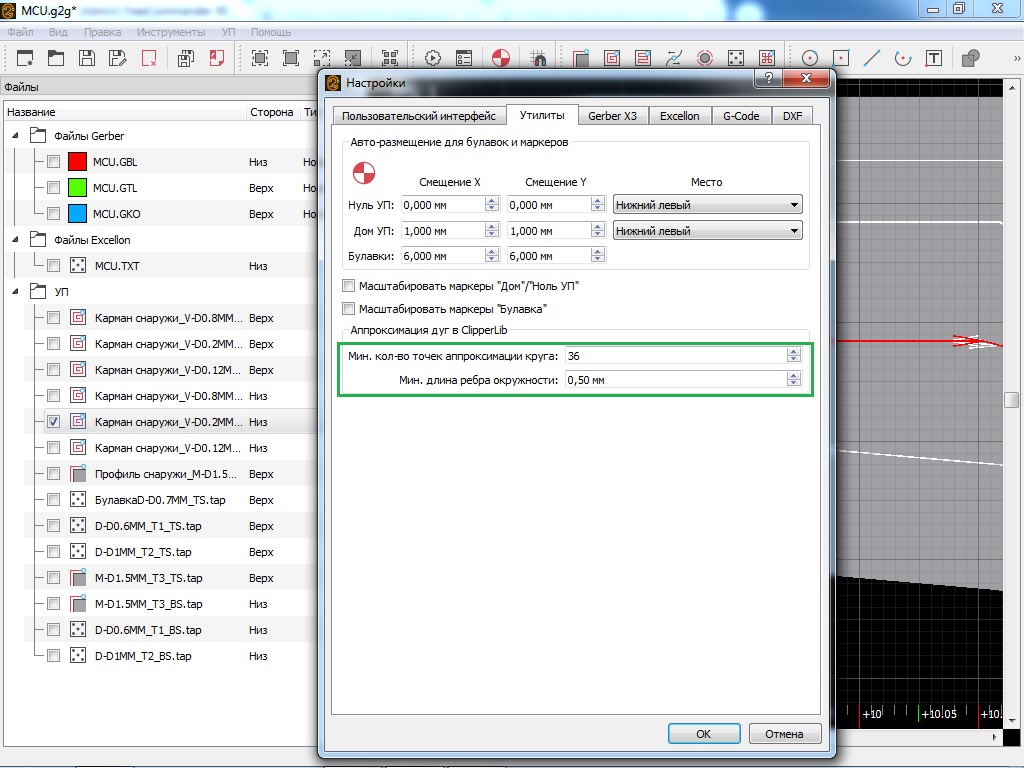 там же в настройках g-кода есть опция склейки, YuryV вроде про неё писал выше по топикуvladi552 писал(а): ↑ 2. На прилагаемом рис. видно, что контуры некоторых отверстий (обычно более 3мм) в УП представляются набором коротких отрезков и инструмент фрезерует отверстия короткими "шагами", что существенно замедляет процесс, тратится время, изнашивается механика станка. Есть ли возможность и это пофиксить?