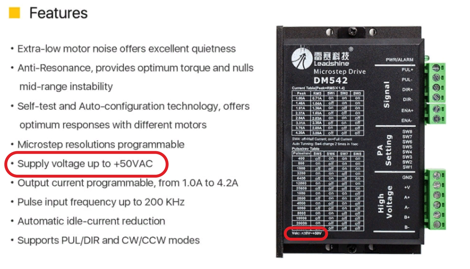 Очередной чайниковский вопрос, собрался заказать драйвер, в описании к 2М542 написано: Микроступенчатый драйвер 2M542, 2 фазы, 1,0-а, 24-50 В постоянного тока, а в описании к DM542 - Двухфазный шаговый драйвер Leadshine DM542, 20-50 В переменного тока. Переменный-постоянный ток это ошибка или они бывают разные?
