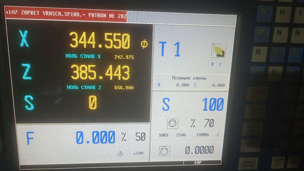 2) Не получается запустить шпиндель, выдает ошибку "ZAPRET VRASH.SPIND.- PATRON NE ZAZAT". Деталь я зажал.