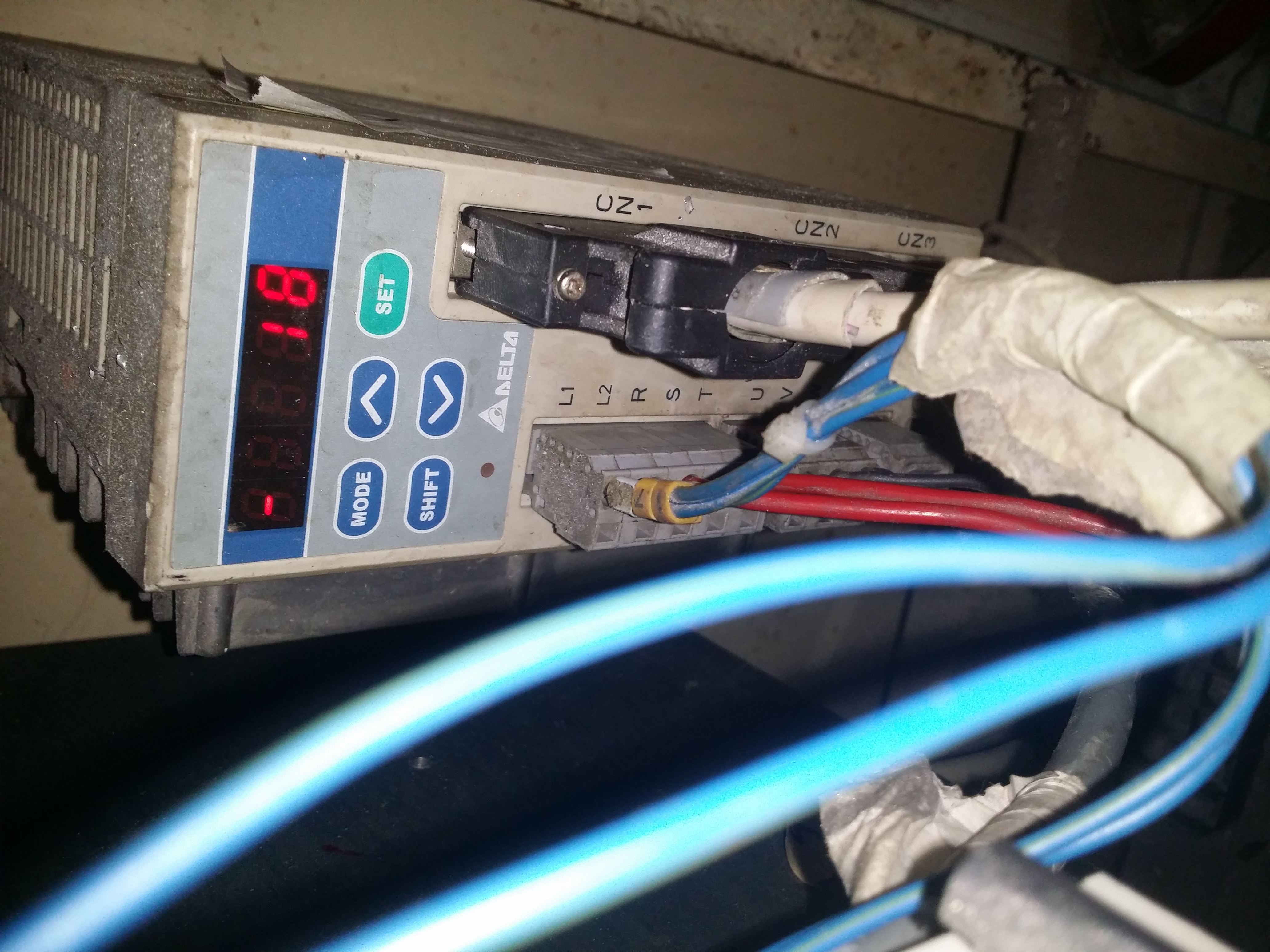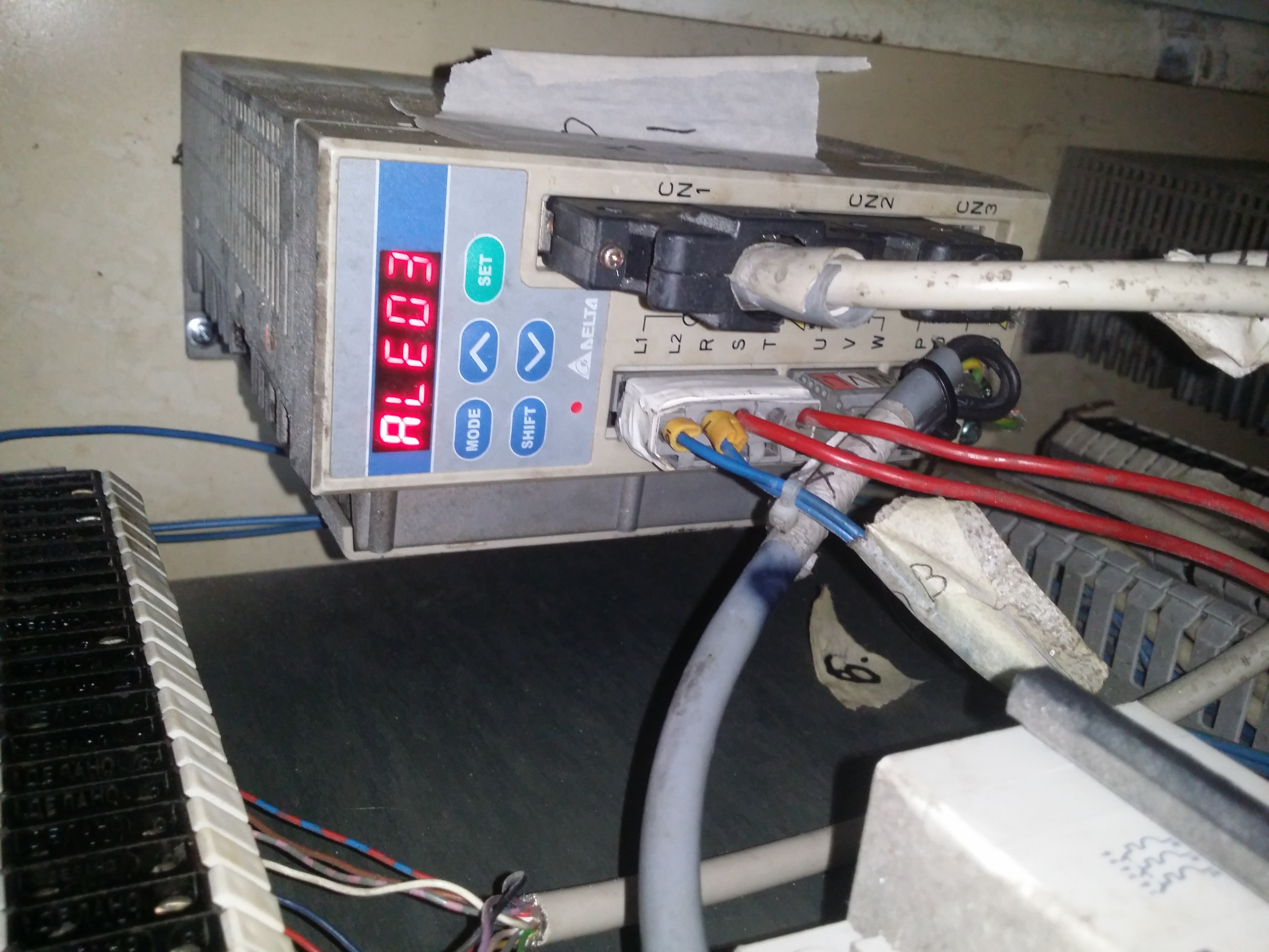При этом напряжение 220 в порядке на входе в серву. Только подключены вводы R T, а не R S, как на схеме. (даже силовые клеммы перекидывал - безрезультатно / если вернуть всё, как было, то ошибки не будет, только не понятно когда соизволит запуститься станок.)