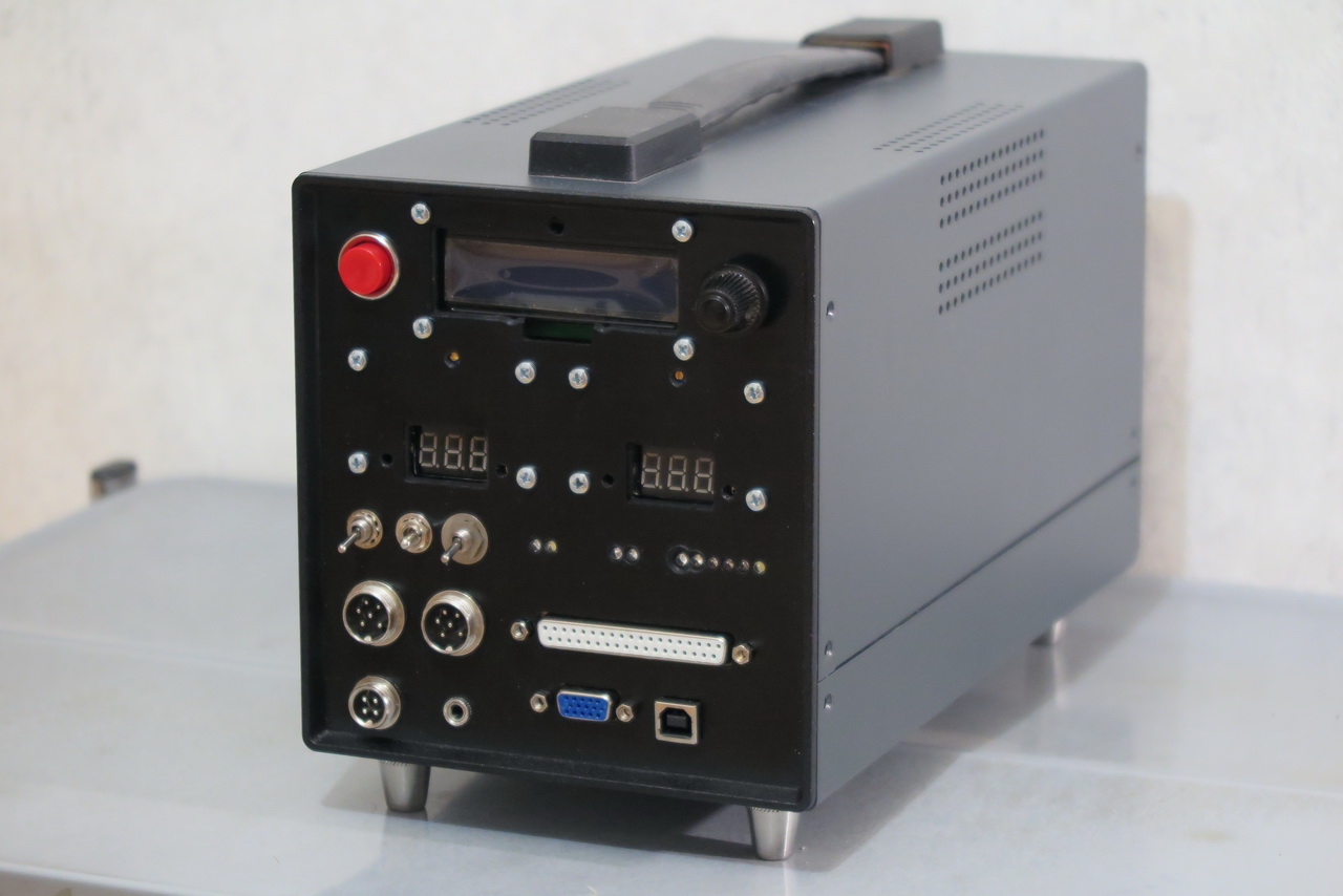 На передней панели выходы от Mach3-USB платы: на драйверы станка (типа LPT), на MPG (типа VGA) и на комп (типа USB).