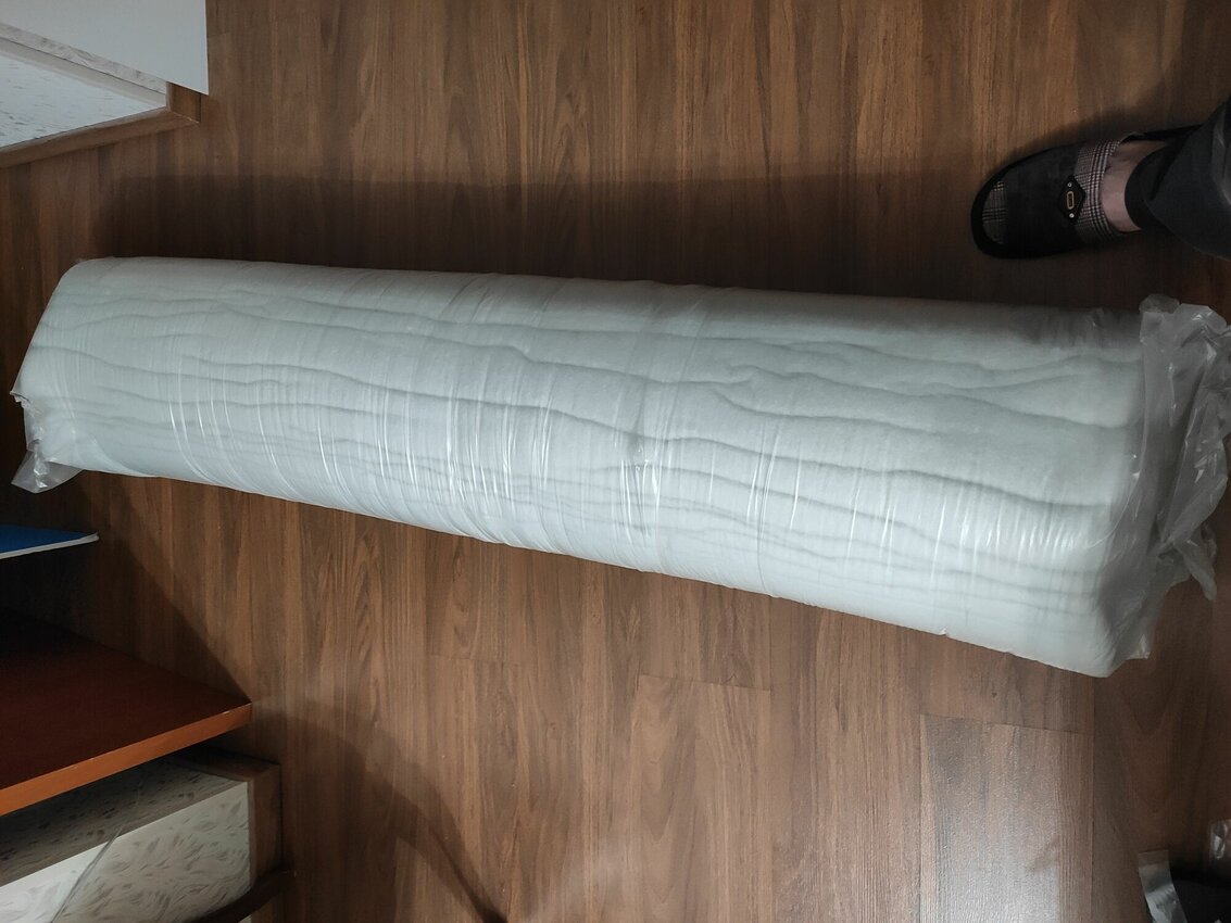 В качнстве наполнителя есть покрытие от матраса - что-то типа сбитого ниточного мата 8-10 мм толщиной. Плотность меньше войлока, но и не синтопон.