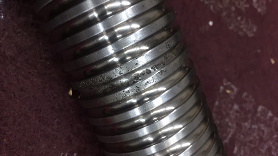 Вот прикупил кфпэ-250. Это второй такой станок в моем цеху. Первый сделан на сервах и китайском шпинделе 3.2. Ощущения от переборки первого станка сподвигли взять еще один. Этот более комплектный и более ржавый. Буду менять швп по Z и возможно в последствии Y. Есть мысли сделать на серво-шаговых двигателях так как станок будет с родной головой работать в основном по сталям. Собственно вопрос кто сталкивался с настройками серво шаговых на скольжении и какие там ньюансы. Прикладываю фотографию винта оси Y. Насколько критичны такие повреждения от коррозии? Гайку я перебрал на умеренный натяг и когда она проезжает это место то от руки не чувствуется практически проблема.