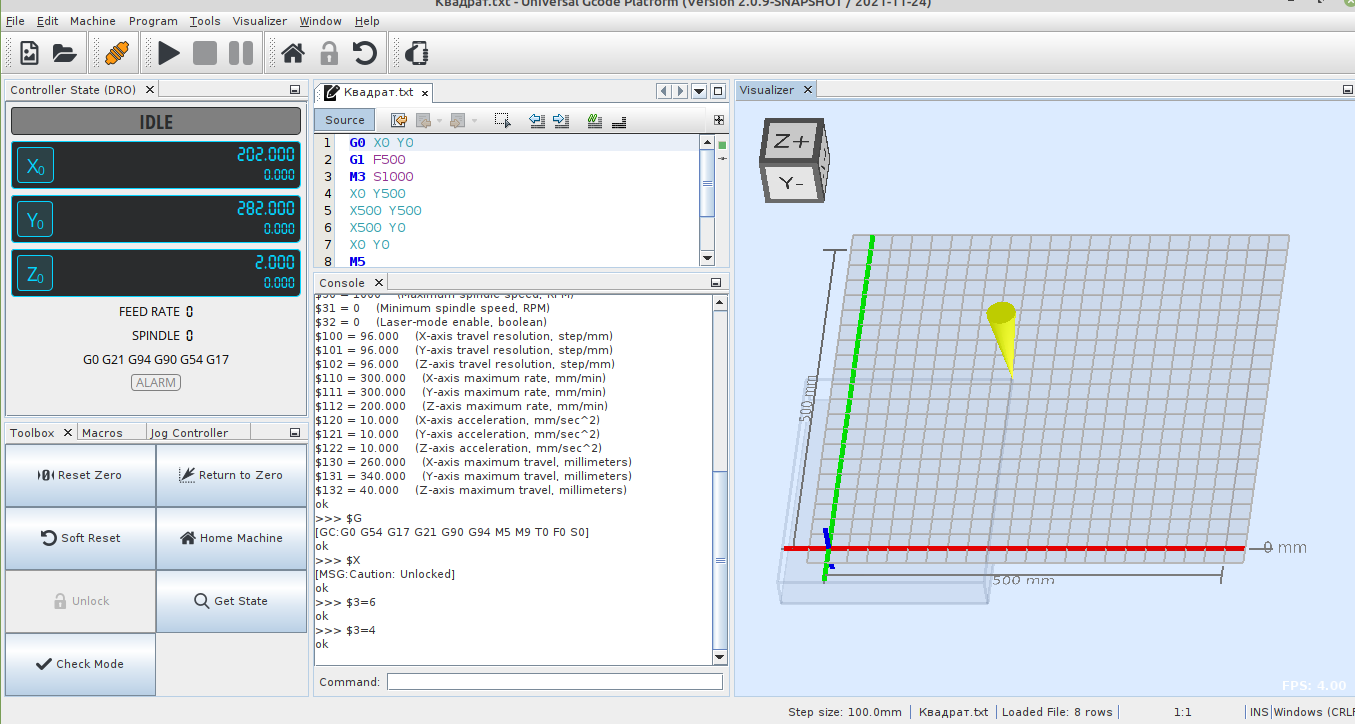 Прогрммьі отрабатьіваются только есть загнать станок в левое нижнее положение и определить ему ноль.