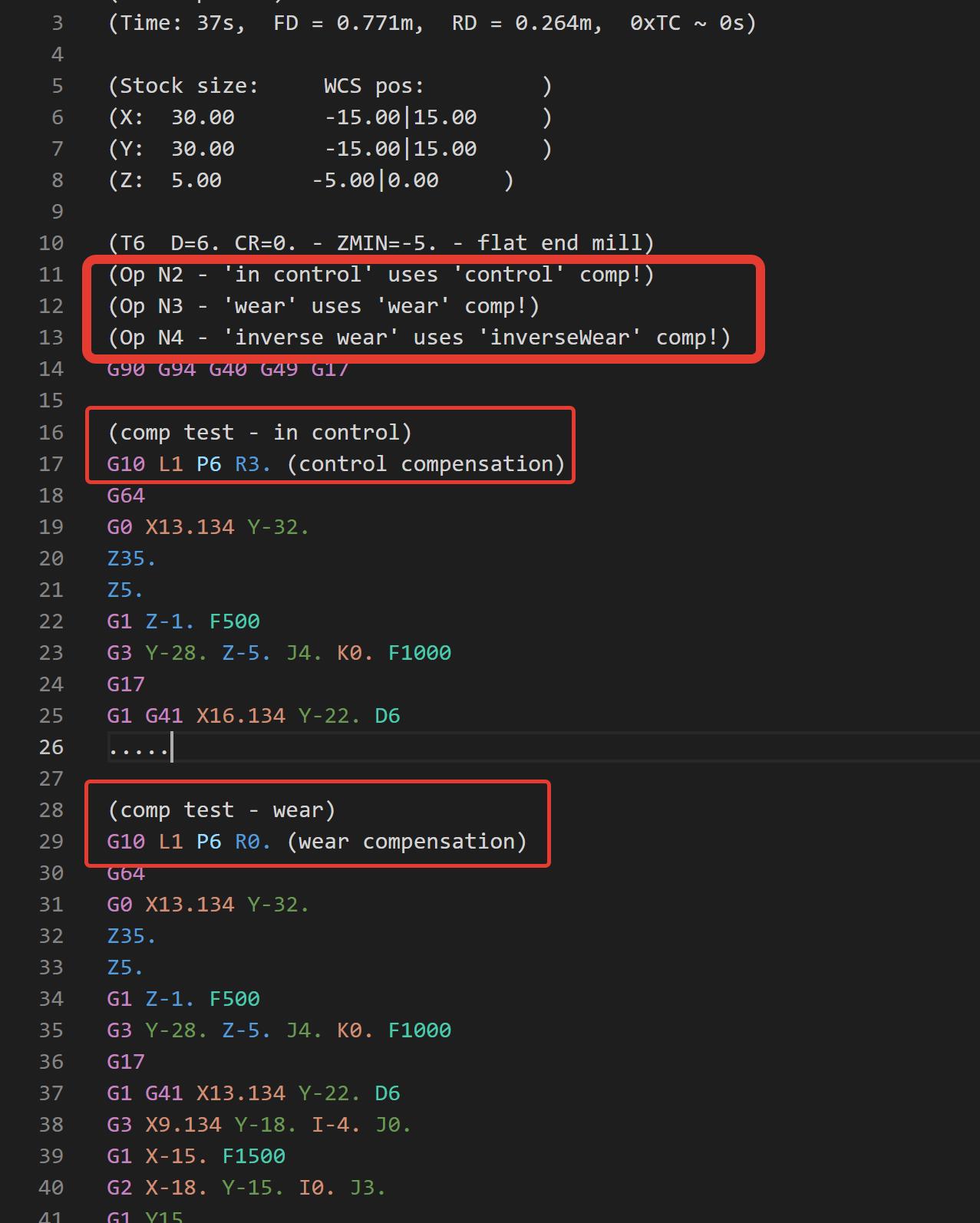 вот тут например железно отрубили в постпроцессоре всё лишнее, чтоб не перепутать и выводился только нужный тип компенсации