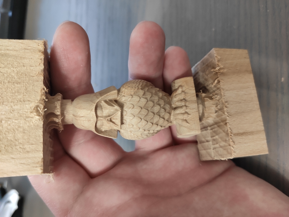 Сова получилась ништяк, материал - бук. Вообще поворотка - очень крутая штука, планирую делать на ней мастер модели из воска и капролона для силиконовых форм, уже сделал две заготовки из парафина и полиэтилена примерно 5:1, посмотрим, как пойдет. Кстати, вы не пробовали делать воск для фрезеровки? Если да, поделитесь рецептом?