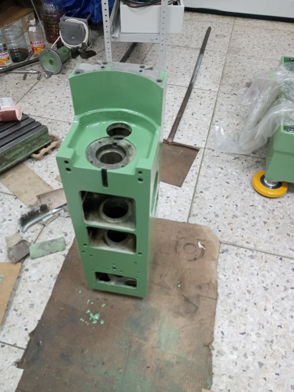 Получили станок после восстановления геометрии и клиньев. Отец потихоньку красит, чтобы потом не разбирать для покраски.