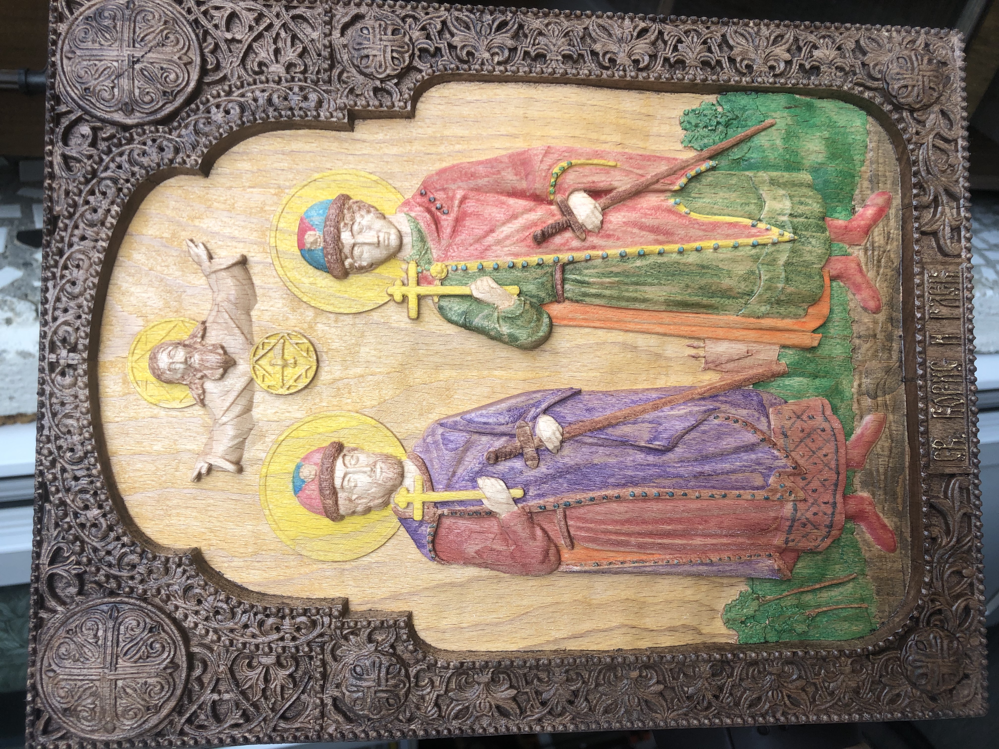 Продолжаю время от времени заниматься изделиями из дерева, и в основном это иконы. Пытаюсь их роспысывать, не всегда получается удачно, но все же, в свое оправдание могу сказать что "не ошибается тот кто ничегно не делает". Да и вообще, как показала практика - это все на вкус и цвет...