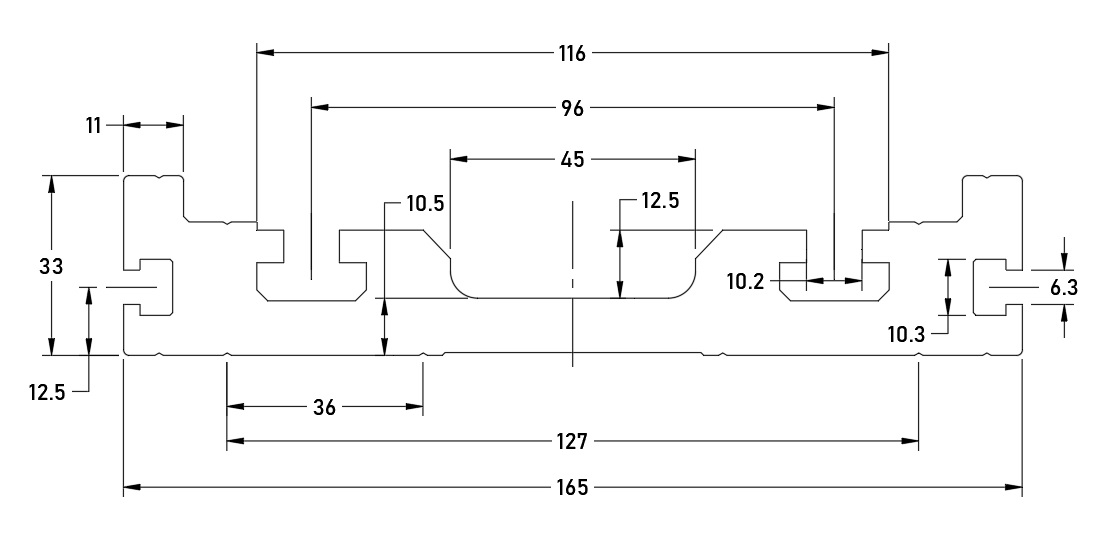 Продам алюминиевый профиль 165х33 для оси Z. Также подходит для модулей линейного перемещения. Для использования с профильными направляющими HIWIN HG20, которые крепятся на т-образные гайки в пазу. Боковые пазы под обычную гайку М6.