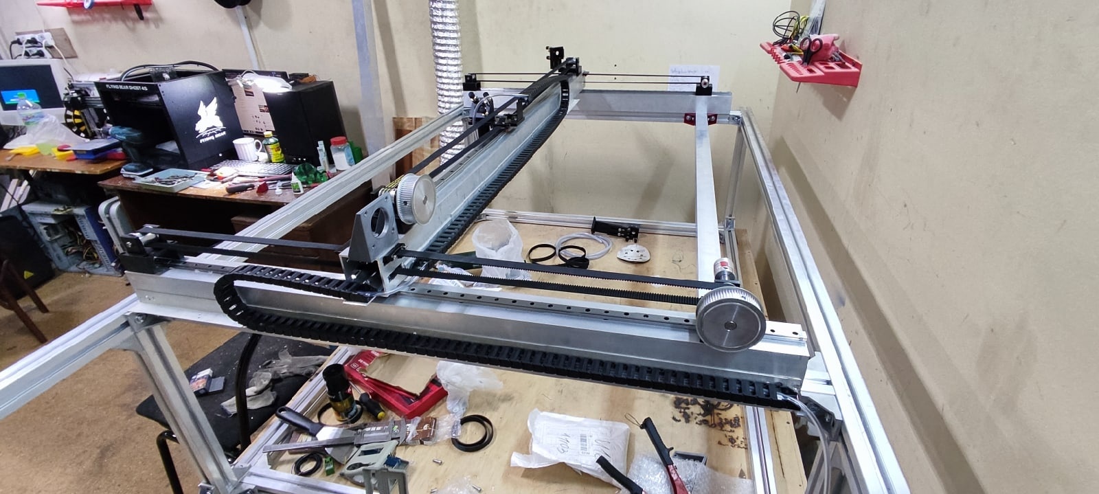 Коллеги, всем привет. Снова вести с полей. Установлены почти все держатели зеркал, натянуты ремни, установлена голова, сделана поддержка для держателя синхронизационного вала, заказана и едет руида, проложены кабель-каналы и держатели для низ. На очереди печать держателей лазерной трубки, сборка отсека с электроникой и попытки подвигать всё это дело