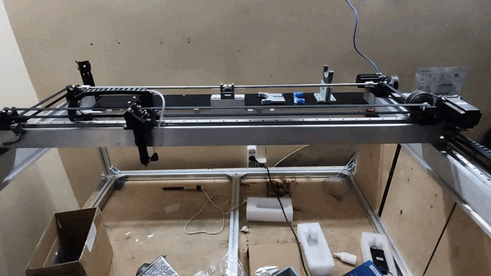 оно работает!!! установлена электроника, всё подключено и запущено. руиду подключил по LAN, оказалось очень удобно отправлять файлы с компа. после крайне низких скоростей на предыдущем станке с nema 17 и драйверами для 3d принтера просто охренел от нынешних возможностей. вполне спокойно катается на 600 мм/с. разумеется, пока без лазера, ибо держатели для него как раз печатаются