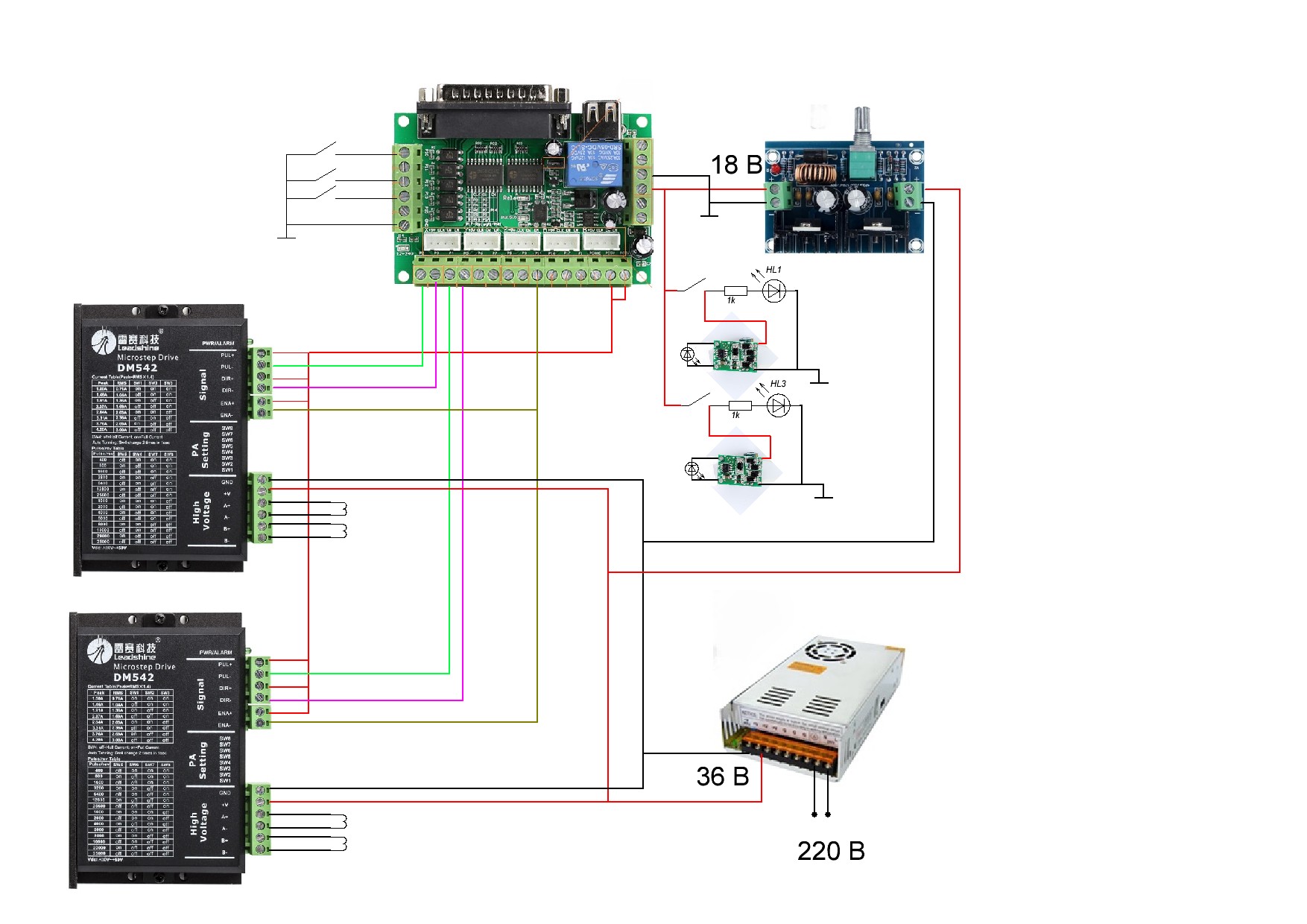 Все подключено по классической схеме. На столе собирал все работало, собрал в сборку, двигателя стоят. При включении только драйверов двигателя стоят на удержании. При включении системника и мача двигателя снимаются с удержания, при нажатии Х+ двигатель становиться на удержание но не крутиться, писк слышен, при нажатии Х- двигателя снимаются с удержания. Сначала работали но в одну сторону только вращались, после танцев с бубнами перестали работать. В маче под двигателя пины степ/дир по умолчанию х2,3,y4,5. LPT порт на PCE плате два штуки. Порт настроен, рабочий, при нажатии стоп или концевиков мач видит, ресет срабатывает. В чем проблема не пойму.