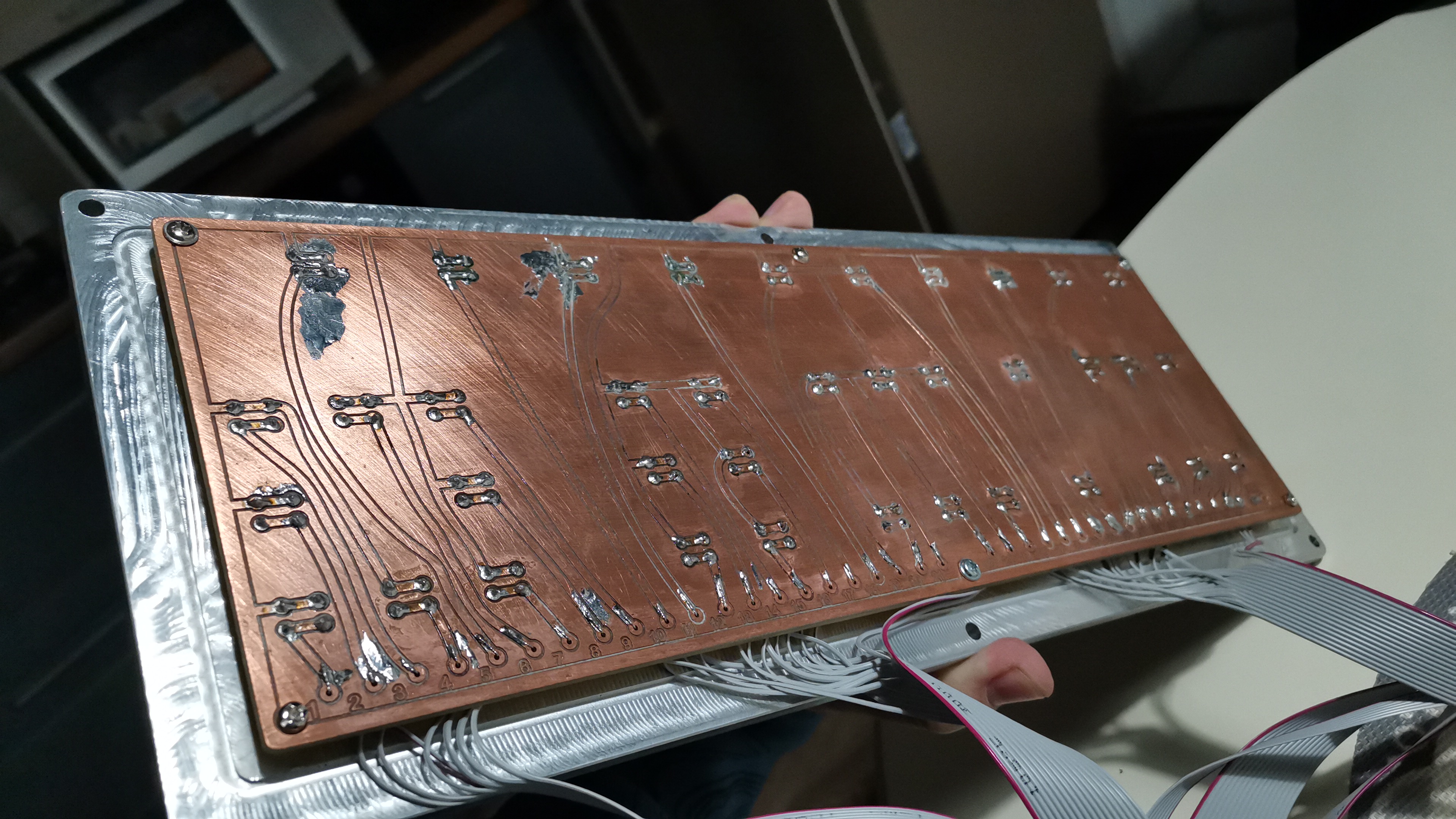 Я же вроде отвечал что кнопки сам изготовил, фрезерованные. Под ними микрики припаянные на плату. Плату тоже фрезеровал, лут не моя технология). Плата прикручивается к лицевой панели, которая является по сути корпусом для кнопок.
