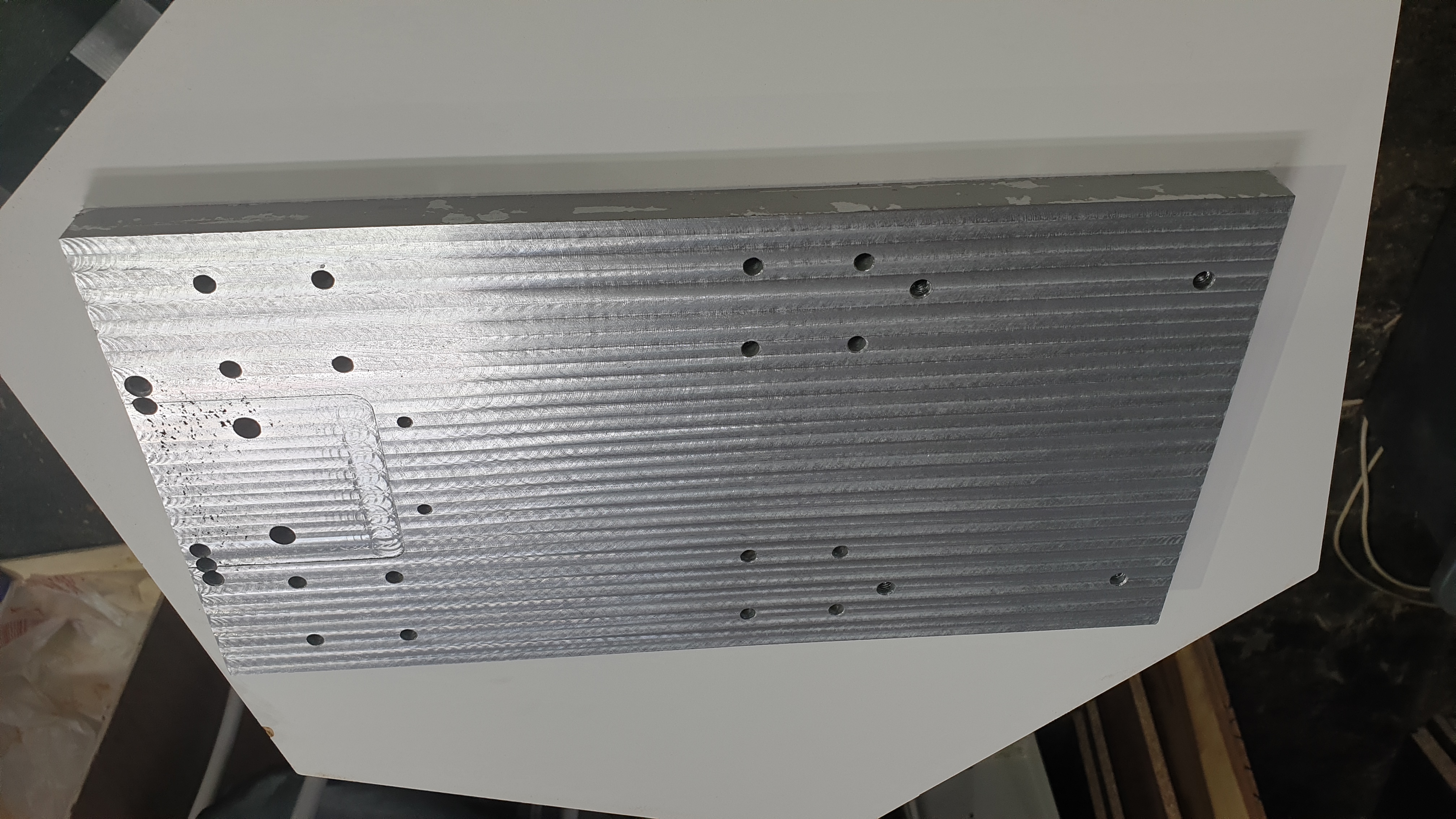 Крепление гайки швп кривое. Подправили, пока не понятно удачно или нет, но надежда есть) Оно стальное, кстати. Плита оси z вся в раковинах, как швейцарский сыр, при затяжке проминается. И толщина всего 18 мм при том, что это просто смесь алюминиевого лома, судя по всему... Решено заменить на новую. В95Т плиту заказали 24 мм. Посмотрим сколько выйдет после обдирки.