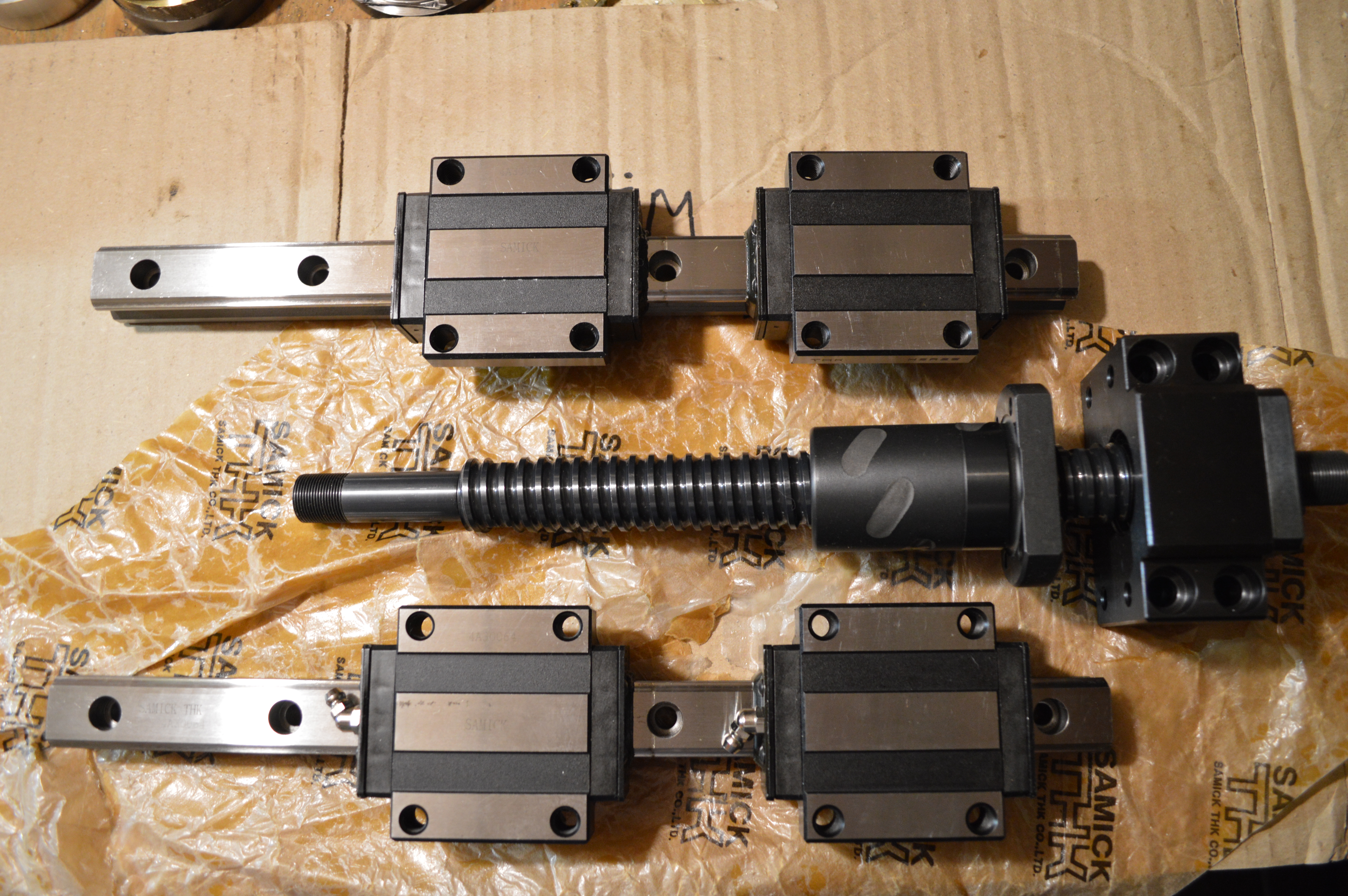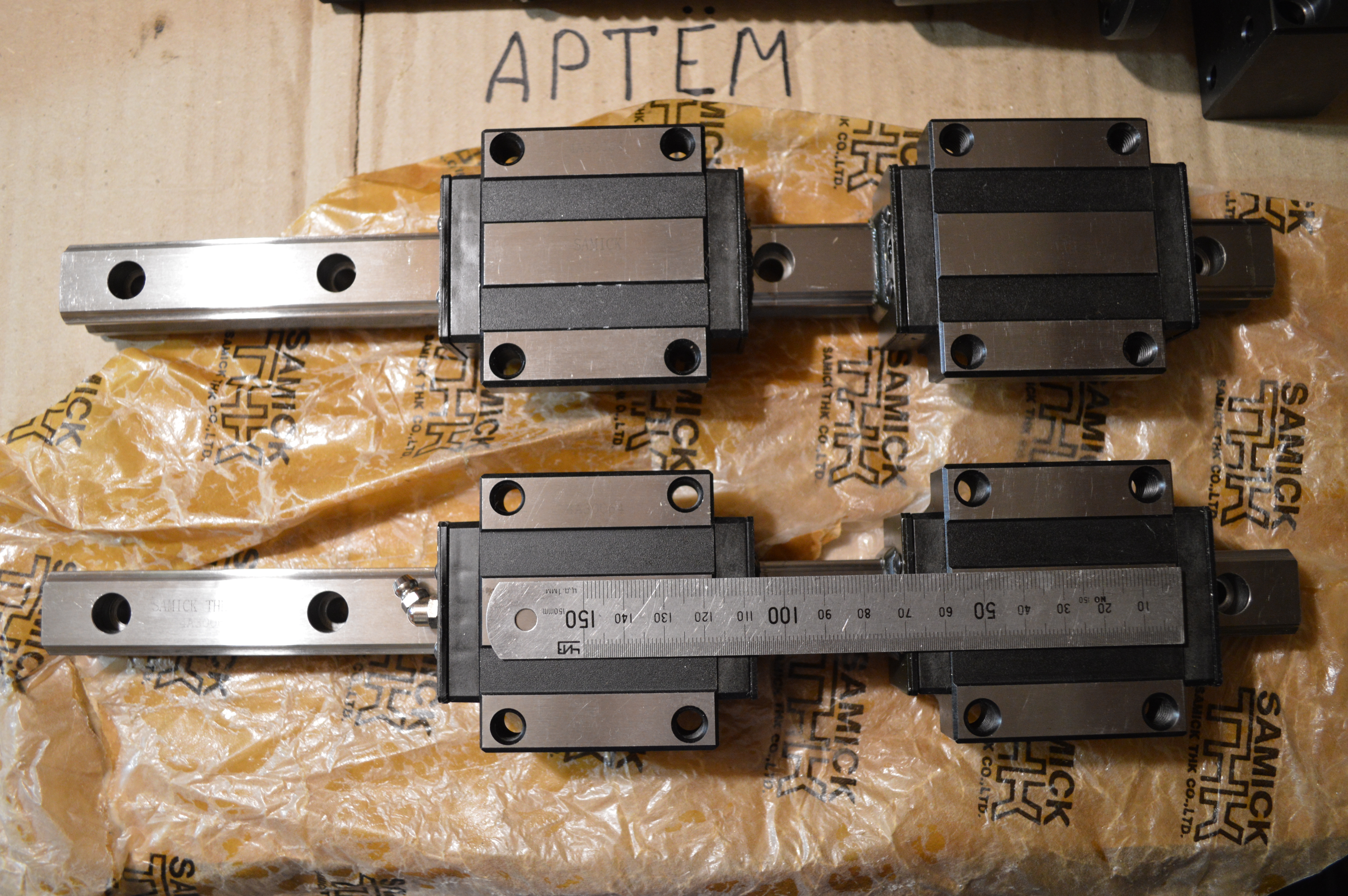 Новые рельсы с каретками все с одним номером, ход около 160 мм, общая длина 340 мм, по ощущению с легким натягом.