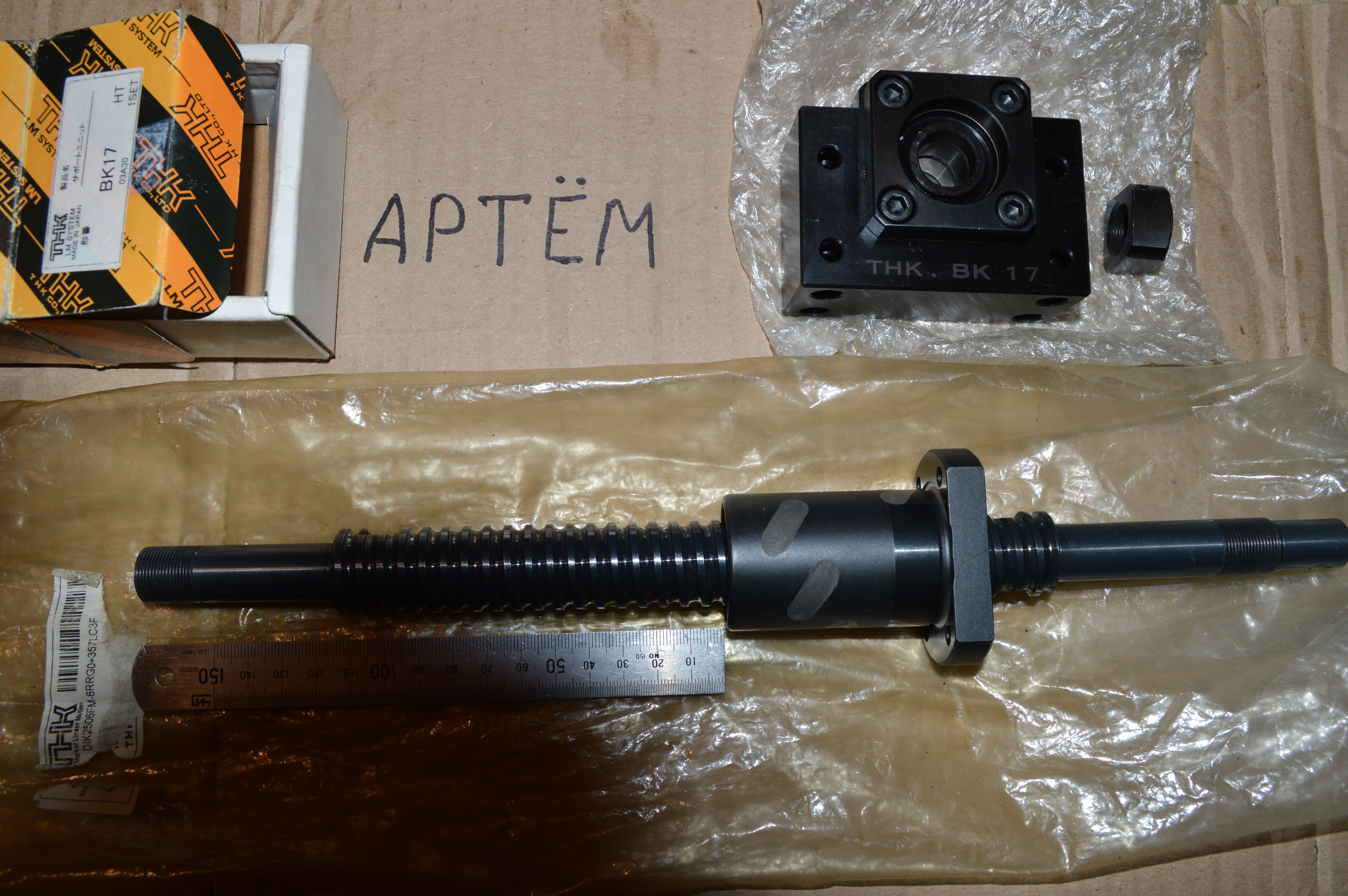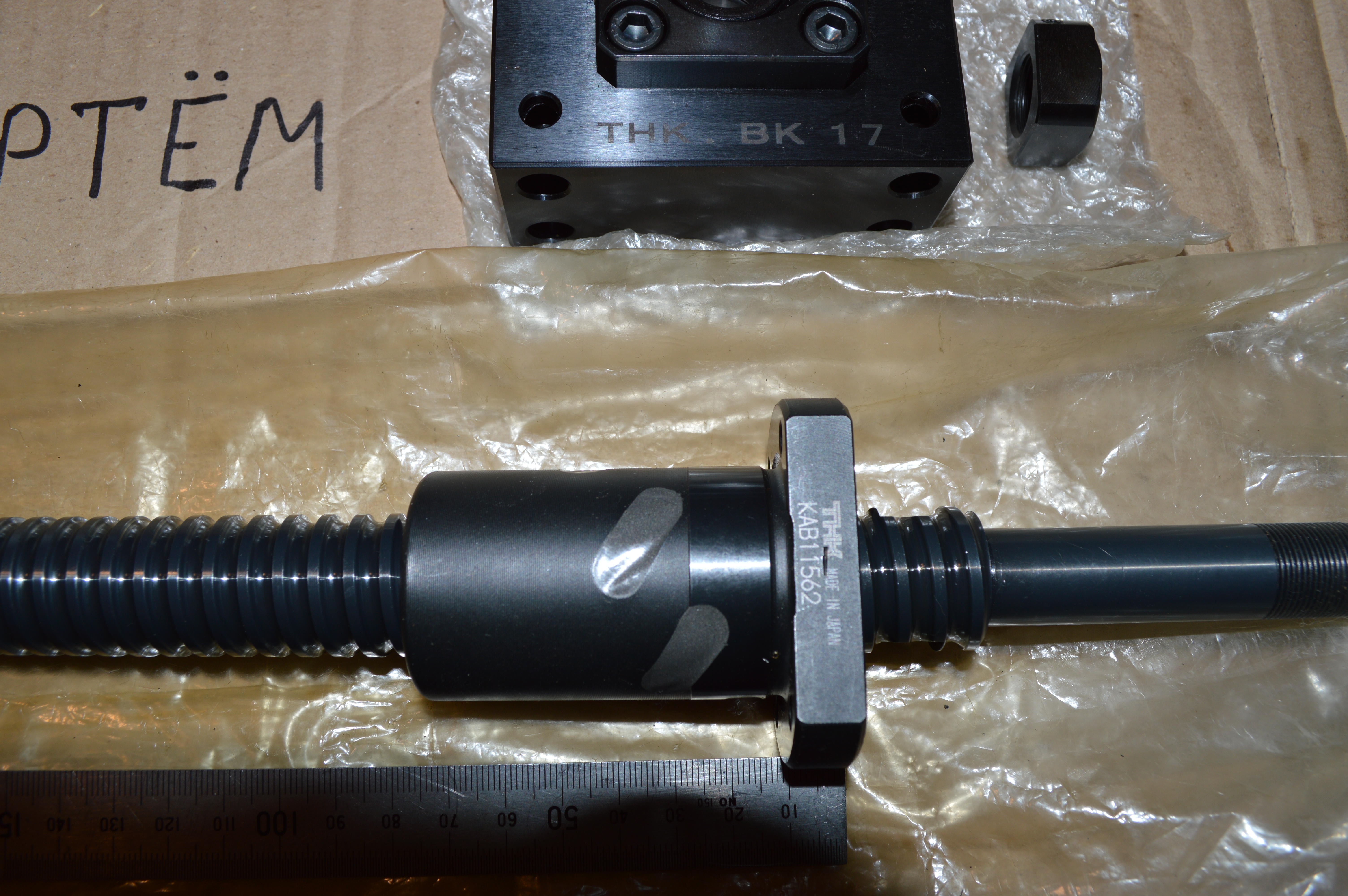 Новая швп, прецизионные с пред натягом, гайка с 6 дорожками, три в одну сторону три другие упираются в другую сторону винта тем самым создавая пред натяг, по сути это двойная гайка в монолитном корпусе. ход если не ошибаюсь порядка 130-140мм. концы обработаны под опоры BF/BK17.