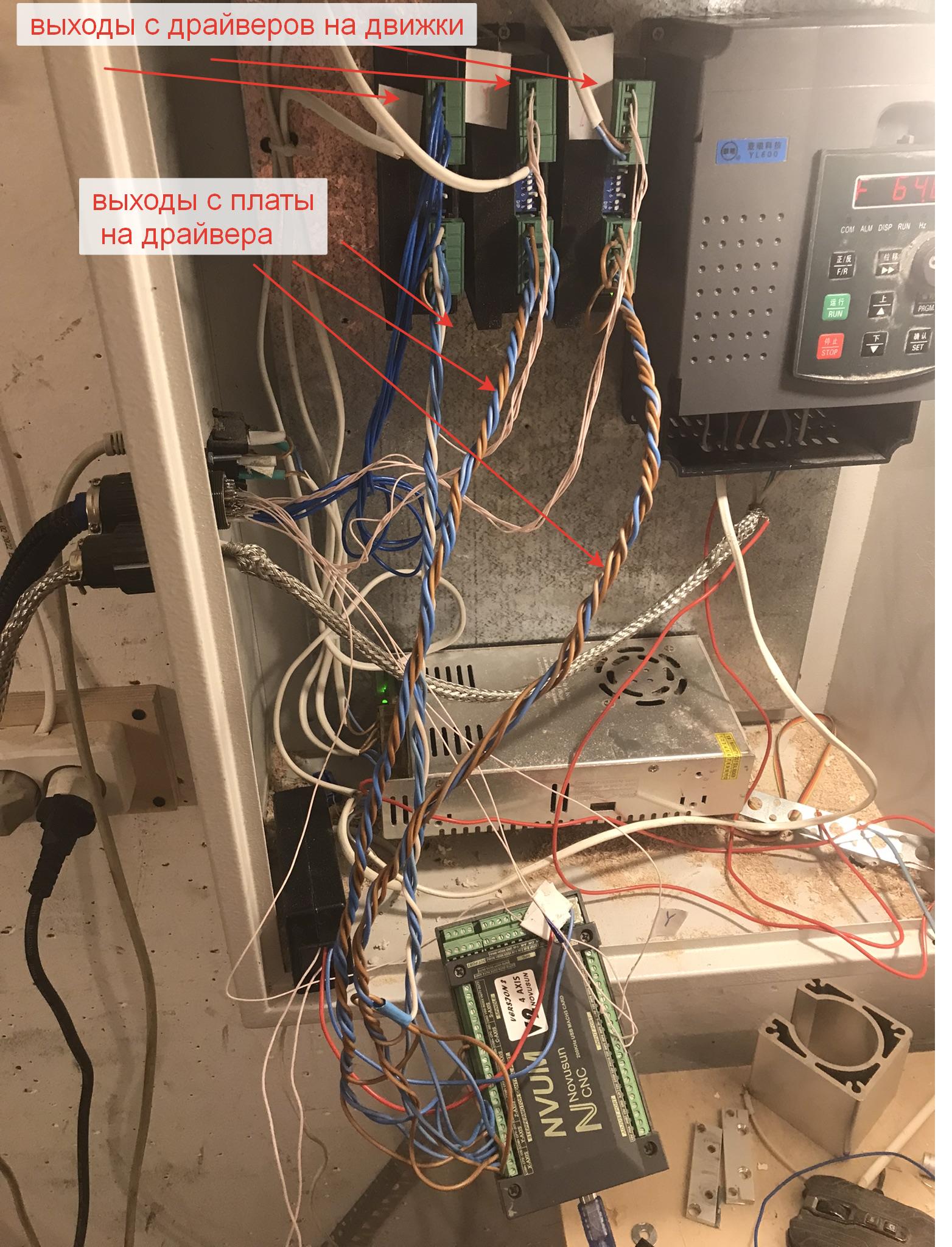 Потом я скрутил в плотные жгуты вон те провода от платы к драйверам и от драйверов к моторам и оно стало ещё стабильнее.