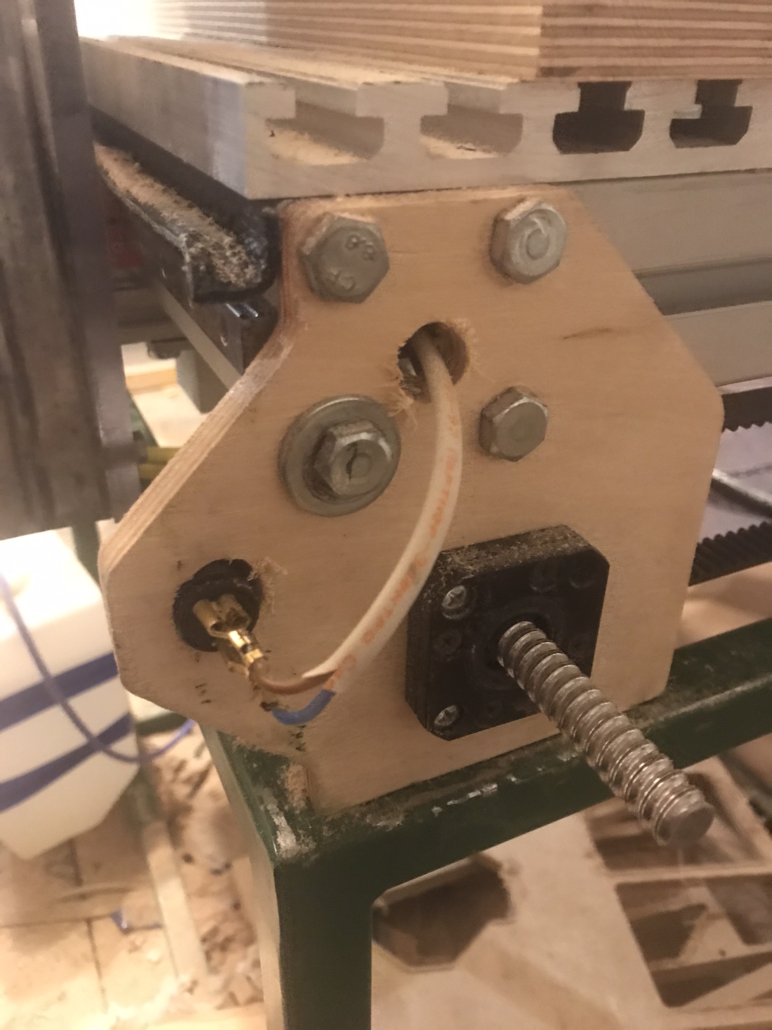 - фанерные опорные узлы подшипника - по ходу строительства потребовалось изменить высоту. Поликарбоната не оказалось, вырезал пока из фанеры. Когда закрутится станок - это будут вторые по очереди детали на изготовление.