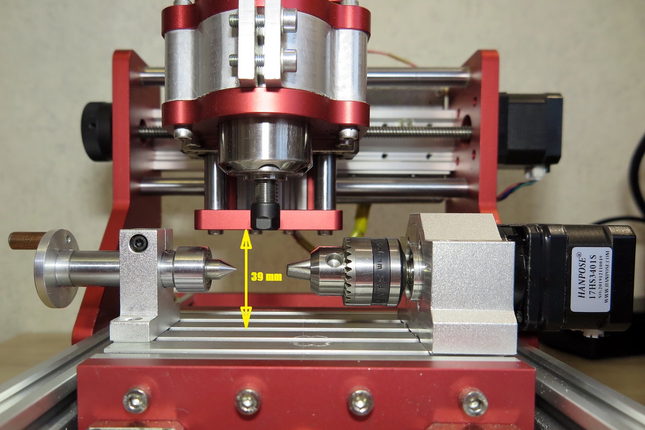 Заманчиво! Но следует помнить, что у CNC1310 расстояние между столом и кареткой X всего 39 мм. Т.е. не то, что всё это хозяйство не поместится, а даже центр патрона окажется выше этого уровня :wik: