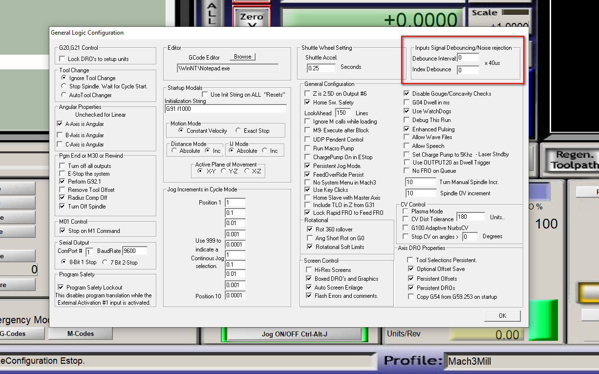 Интервал устранения/Индекс устранения (Debounce interval/Index Debounce): Правильно ли число