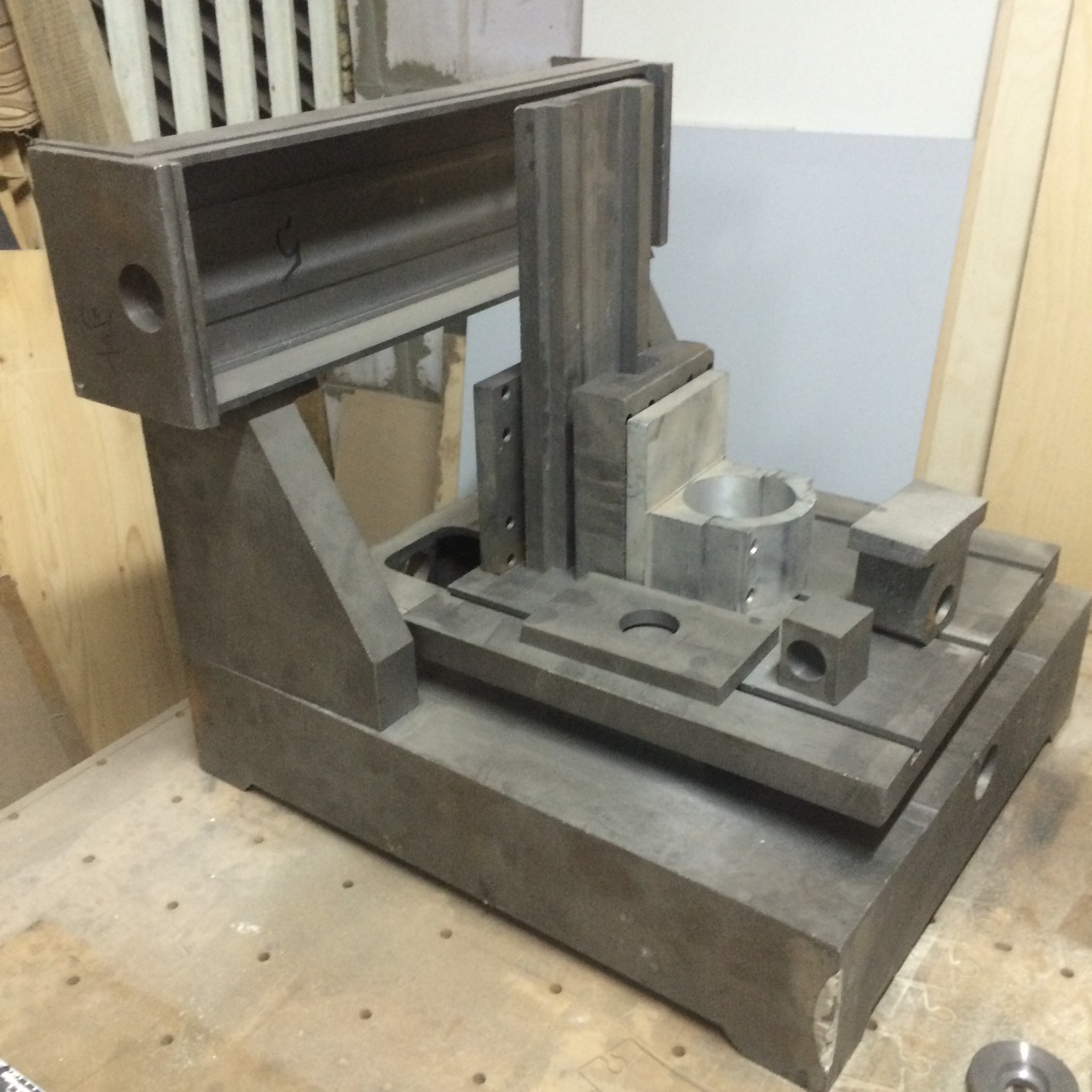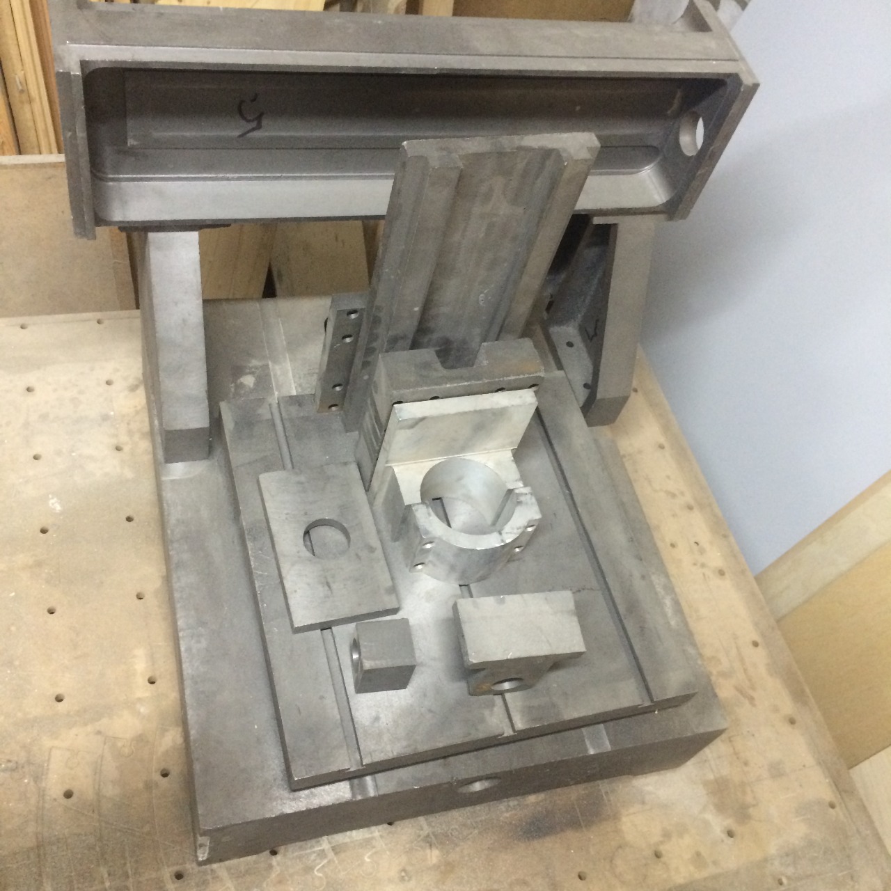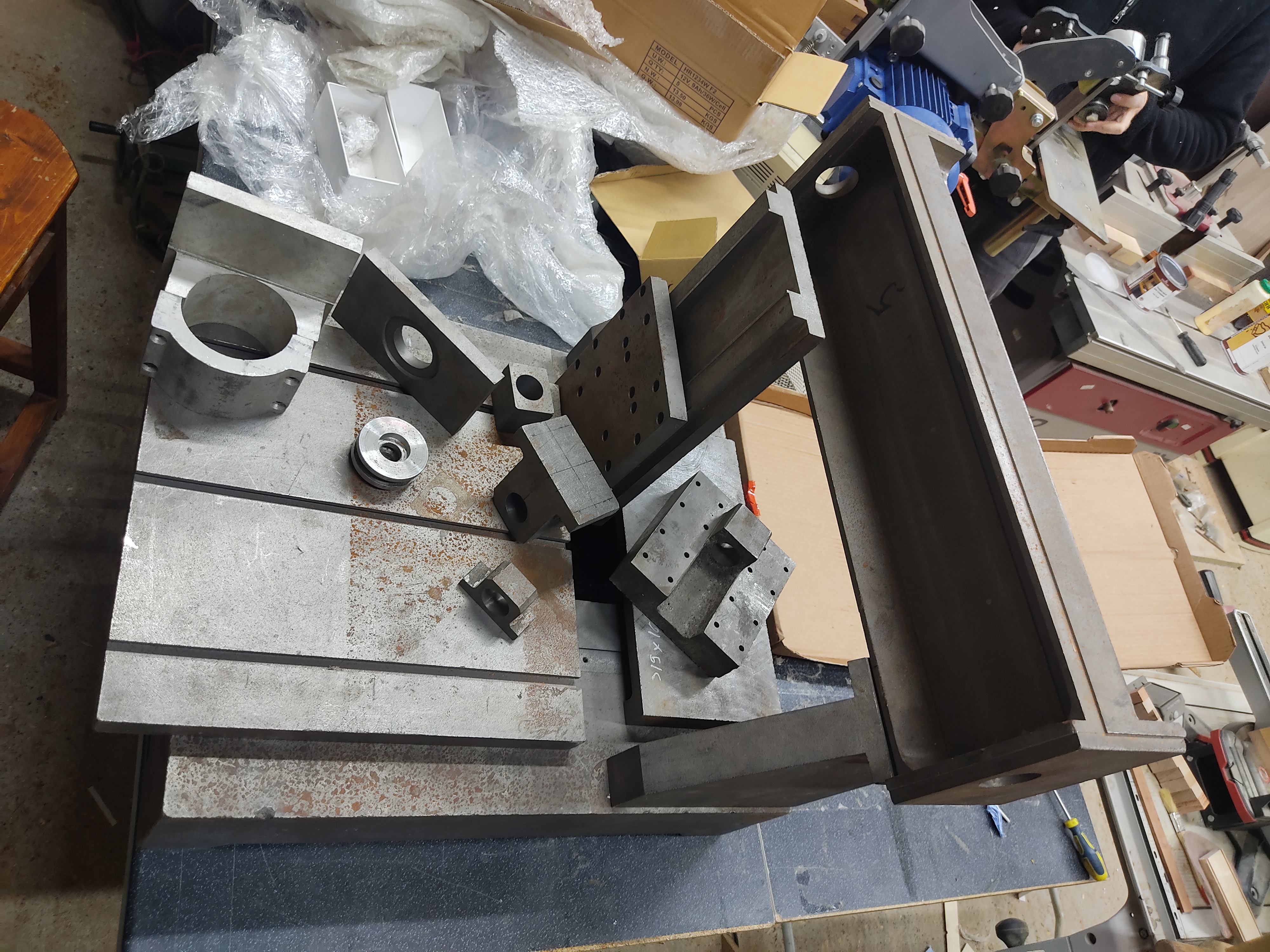 материал чугун ( исключитение только хомут под шпиндель). Масса порядка 100 кг.