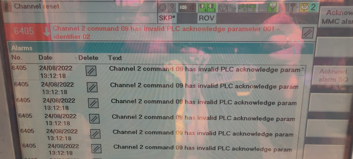 Выскочила вот такая ошибка №6405 и видимо PLC яростно долбит ЧПУ этой ошибкой.