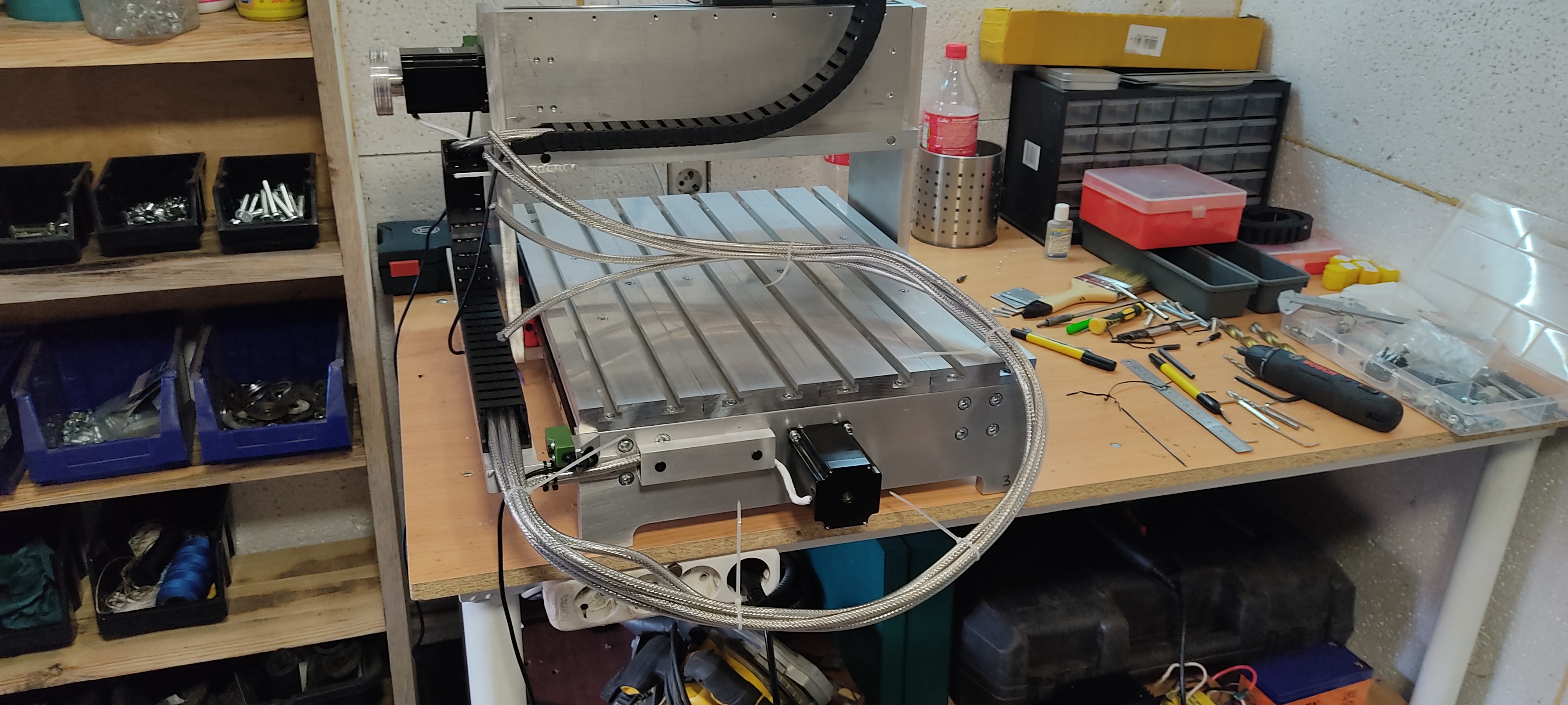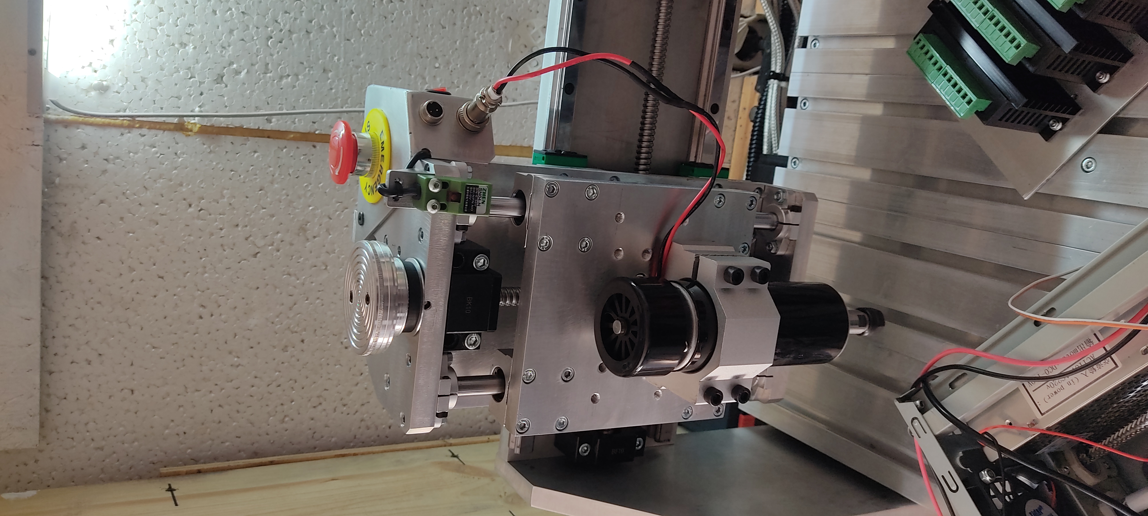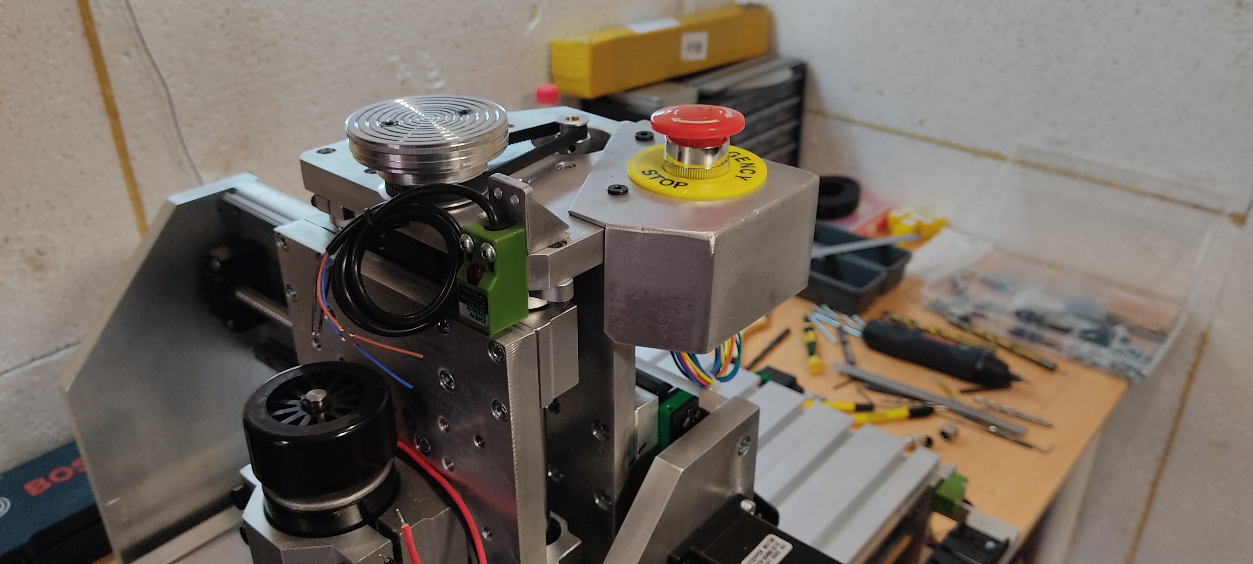Пока подключил всю силовую часть. Погонял вхолостую шпиндель. Проверил кнопку стопа. Осталось подключение драйверов, зонда, концевиков