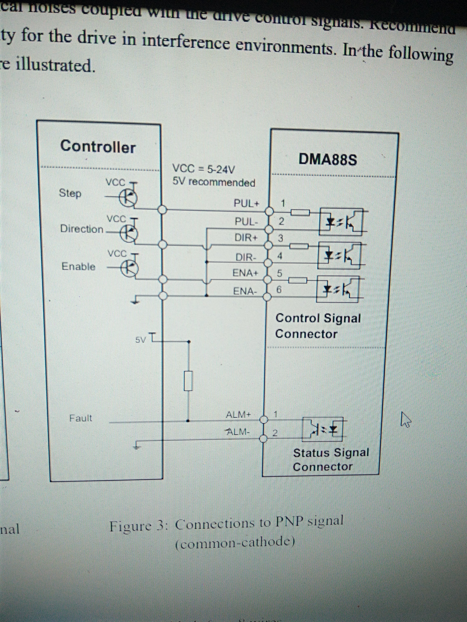 Михаил здравствуйте. Спасибо что еще не бросили проект). Прошу помогите с вопросом. Есть необходимость подключить выход ALM+, ALM- драйвероа, к входу E-stop вашей платы. Можно ли сделать такое подключение и как правильно? Можно ли последовательно подключить 4 драйвера? Схему подключения драйвера прилагаю. При нормальной работе драйвера вход ALM низкое сопротивление(из инструкции).