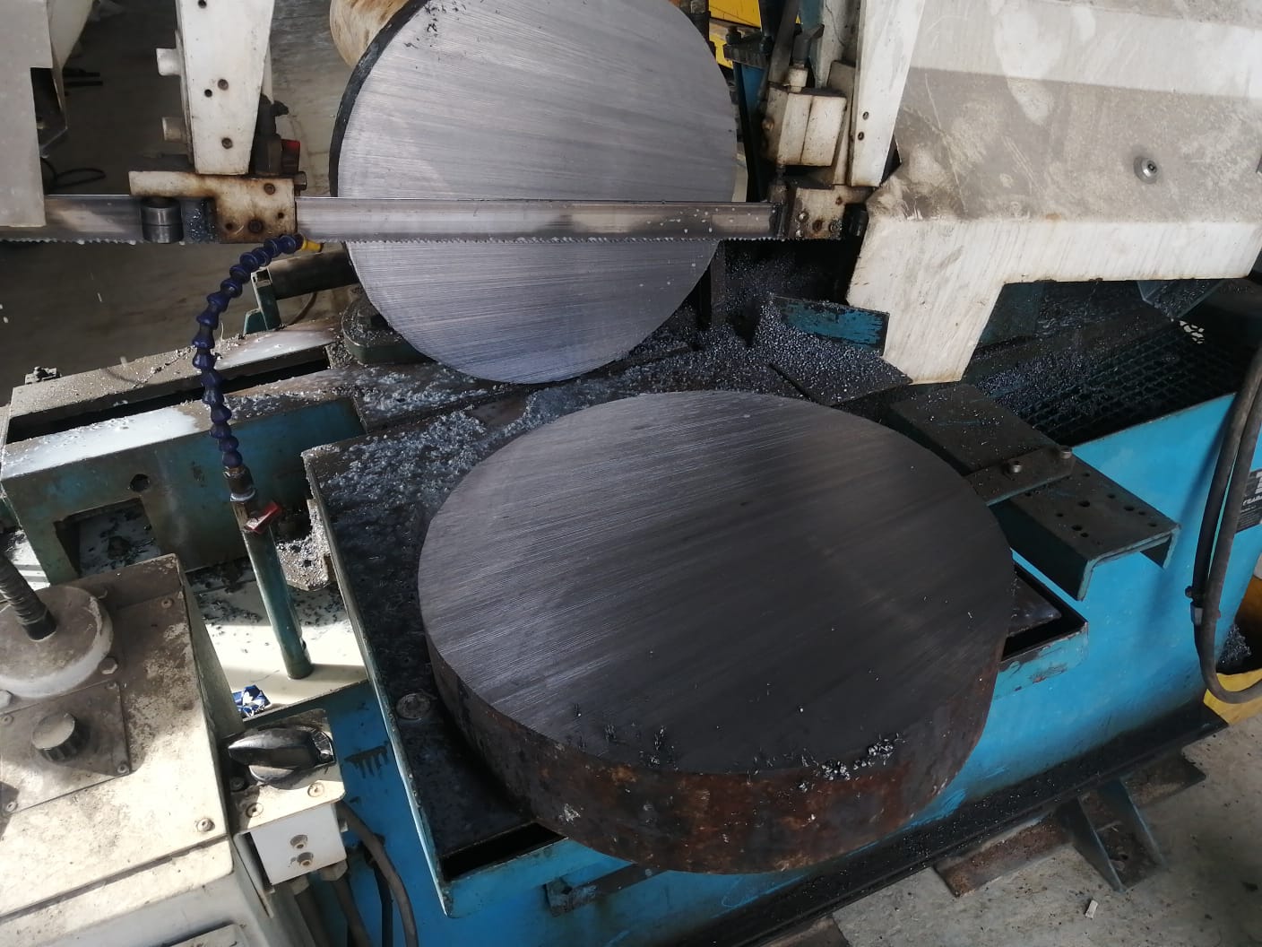 На днях пришлось пилить пополам "Монетку" Ф400. Чтобы зажать приварили её к трубе Ф250 и в пилу... По другому никак, высота "таблетки" всего 160мм а надо отпилить 90мм так как очень неохота спускать в стружку кусок болванки Ф400х70мм.