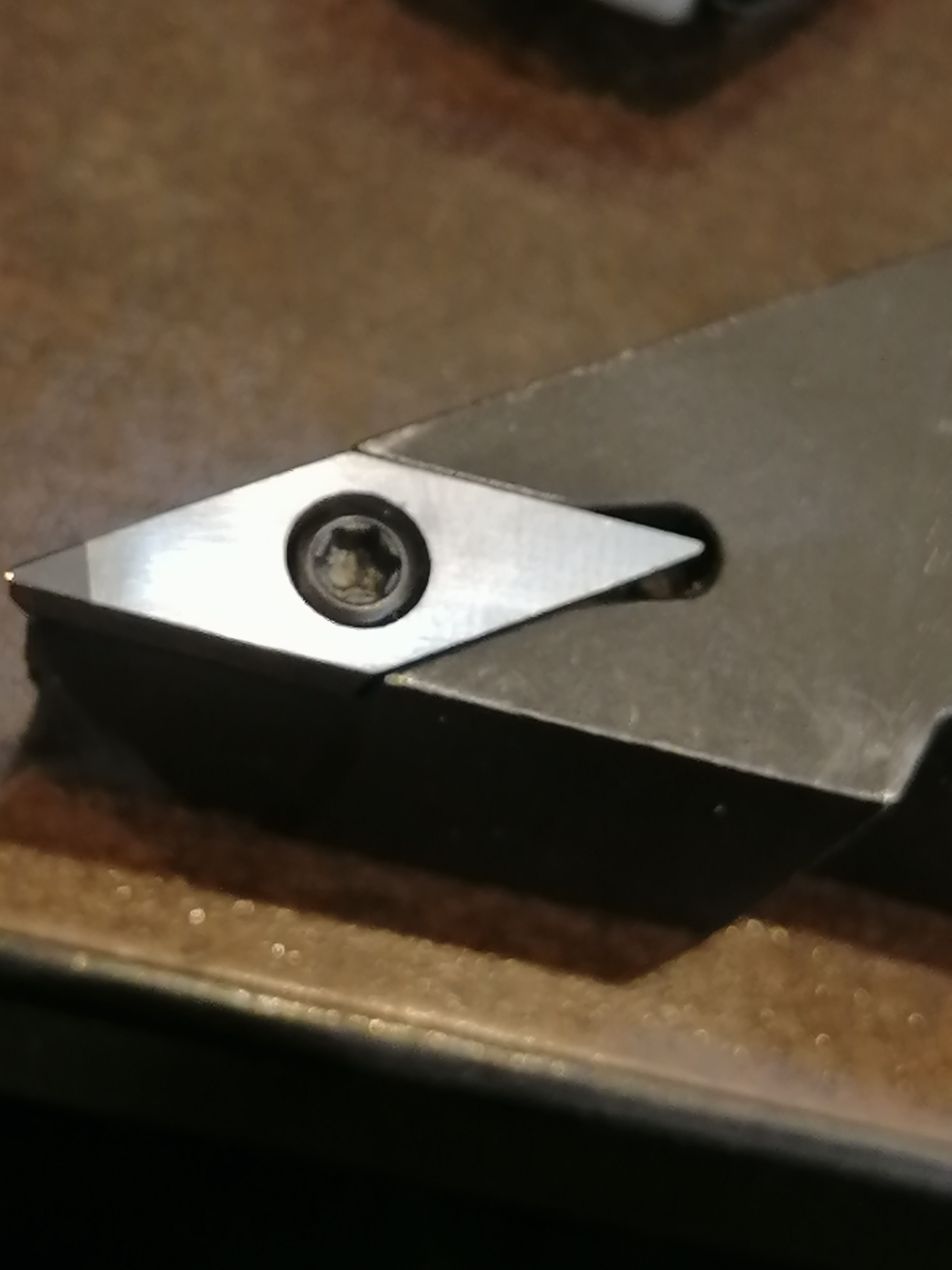 Диск сильно перекален поэтому для первоначальной "грубой" обдирки применил минералокерамику фирмы WIDIA с радиусом 1,2мм