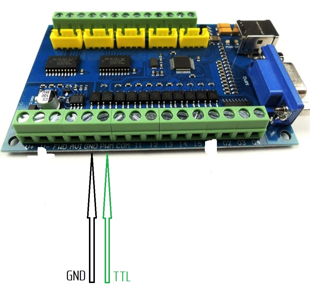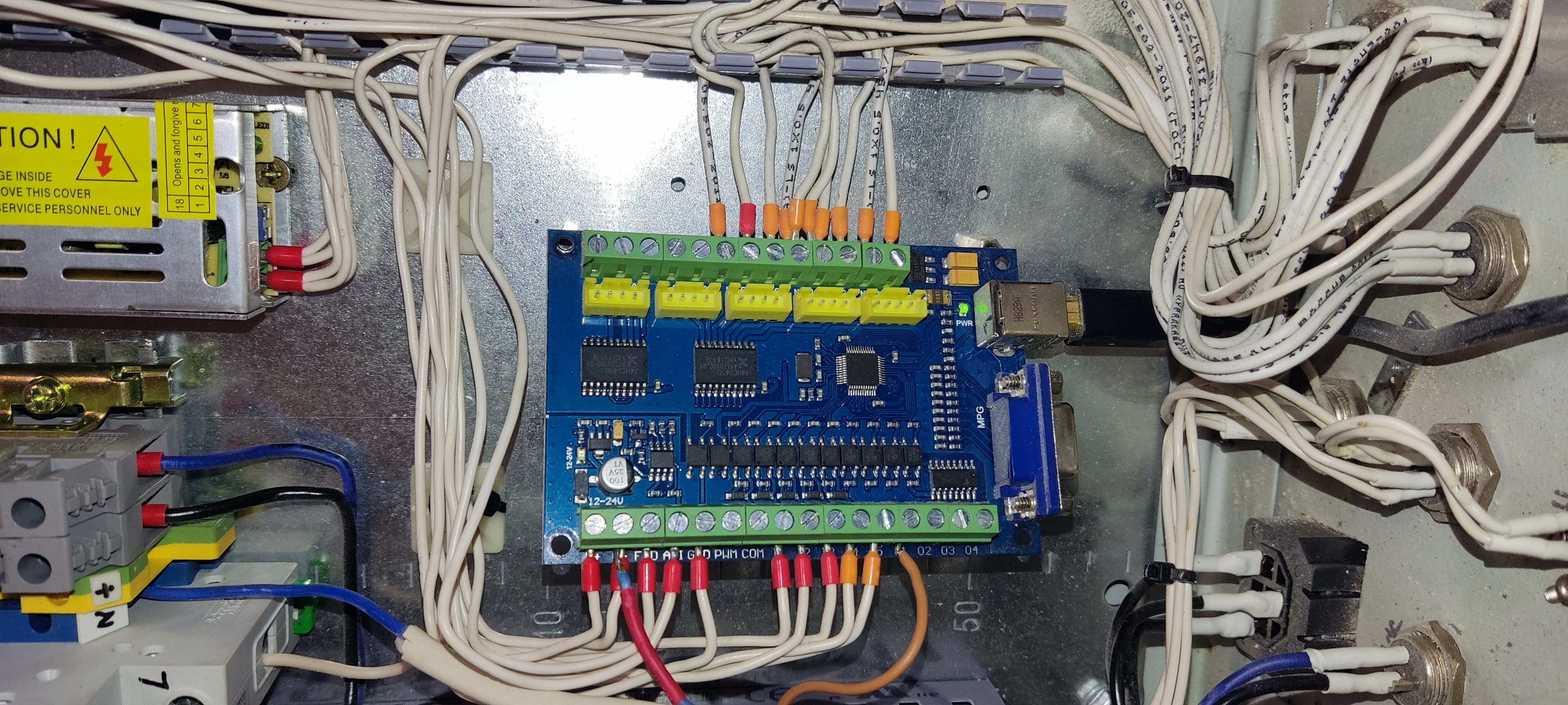 Добрый день. Помогите пожалуйста кто может помочь советом. Не могу разобратся с подключением драйвера лазера к STB5100. Может у кого то уже подключенное есть для примера. В данное время подключено с ТTL - драйвера к V- на STB5100, с TTL+ драйвера подключено к 01 на STB5100, и в таком виде только хоть как то работает. Тоесть включаю тумблером и лазер включается, потом бегу к mach3 и выключаю через кнопку включения шпинделя, только начинает шпиндель работать при этом. Далее прицеливаюсь, и сижу с мышкой от компьютера при нанесении надписей, включаю и выключаю вручную этот лазер. Хотелось бы чтобы автоматически все работало. Покупал станок с рук, так и было подключено.