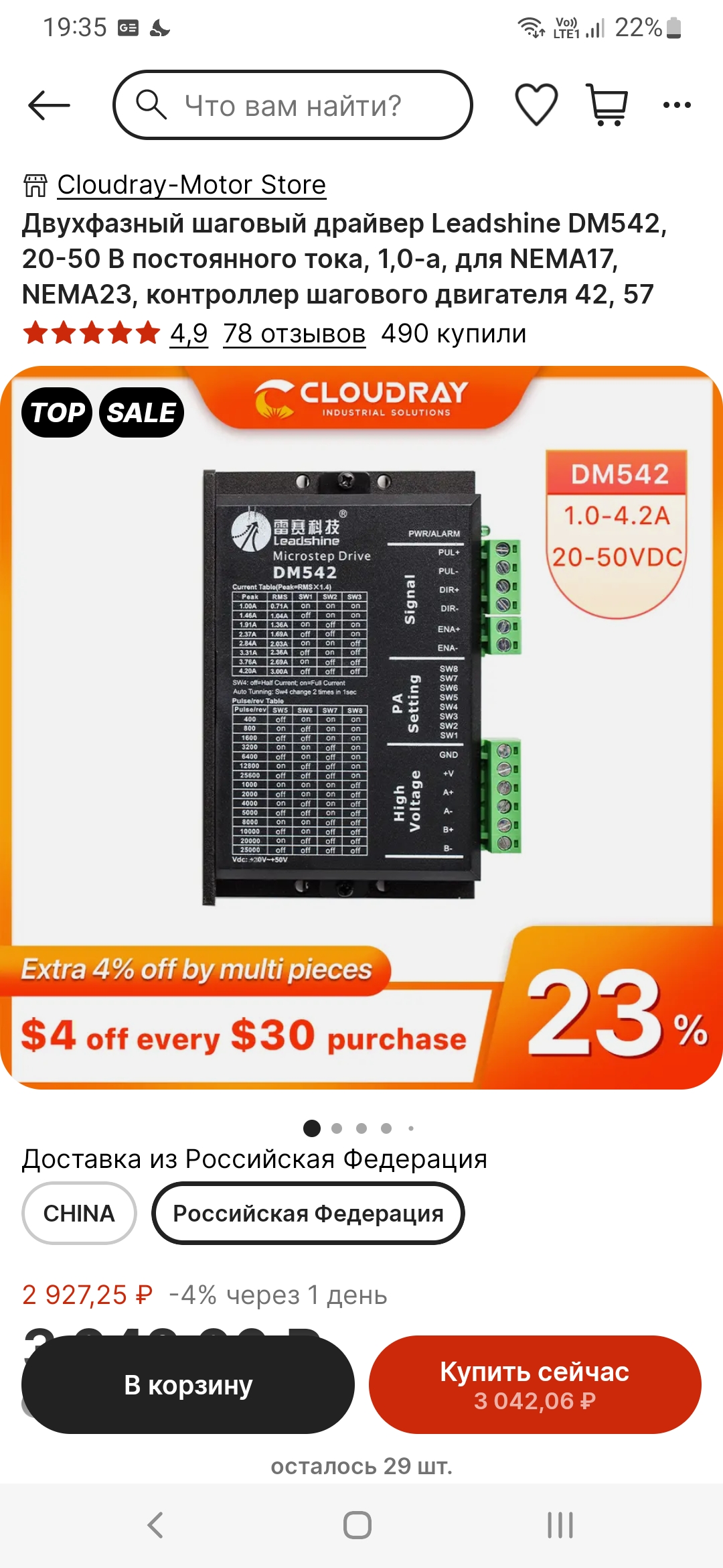 ИзображениеПривет всем. Заменил один драйвер, (стояли китай-китай) один умер. Взял вроде по лучше. После включения слышны вроде как пропуски шагов, или близко к этому. Передергиваю 4 тый переключатель и все норм работает. Пока питание не снимется. Вообщем при каждом включении, надо настраивать драйвер под двигатель. В мусорку его или можно сделать что то?