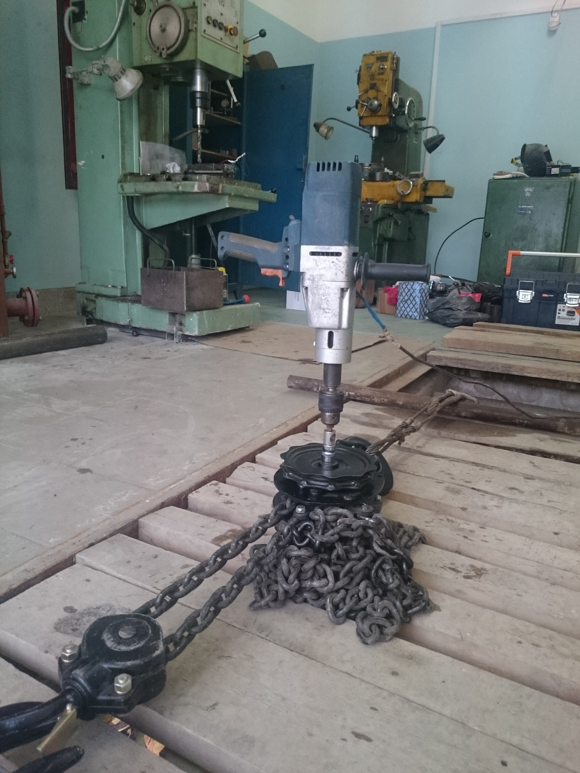 Поскольку медленно нам лень, приладили 2кВт-ную дрельку, дело пошло.