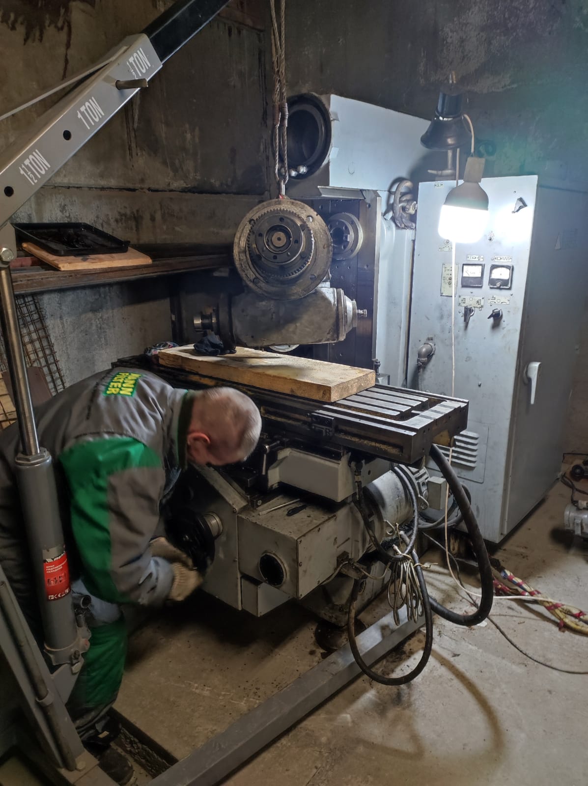 А вот сходу застроповать станок не вышло, высоты не хватает.