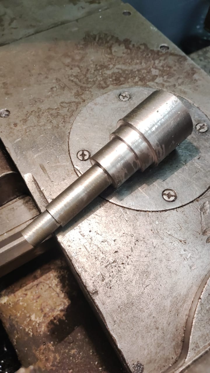 Чтоб поставить мультификс, нужно изготовить две детальки - блин вместо родного с призмами под малую продольную и валик, на который все потроха мультификса собираются. Выточил на соседнем токарнике блин, посверлил, отдал его парням, чтобы пошлифовали нижнюю сторону. высоты блина не хватает, чтоб цековкой углубиться под винты, нашел DIN-овские впотай под шестигранник. развернул отверстия под установочные штифты. Выточил из прутка Ст45 валик, припуск около 1 мм для финишной обработки после закалки. Достал из закромов муфель, отревизировал( не включался из-за закисших концевиков на дверку). Как выяснилось, терморегулятор у него крайне ненадежный, регулятор-крутилка - реохорд, на температурах выше 600 "хрустит". Калил по цвету в итоге, что получилось - не понятно. Буду менять на ТРМ-500. Проточил в размеры, нарезал резьбу М16х1,5. В принципе, все готово, можно собирать. А, еще нужно было в родной шайбе под гайке увеличить диаметр отверстия. Родной размер под резьбу М10, посчитал, что слишком дристушка получится. Может быть, нужно было делать под М18х1,5, под такой размер резьбы легко достать высокопрочную гайку с фланцем, у грузовых на колесах такие распространены. Я такую не нашел, взял безфланцевую 10 класса прочности. Отмыл все деталюшки, Ижаку чистоты добавил, помазал водостойкой консистентной смазкой и собрал. Результатом доволен! теперь в сельпо за дополнительными инструментальными блоками...