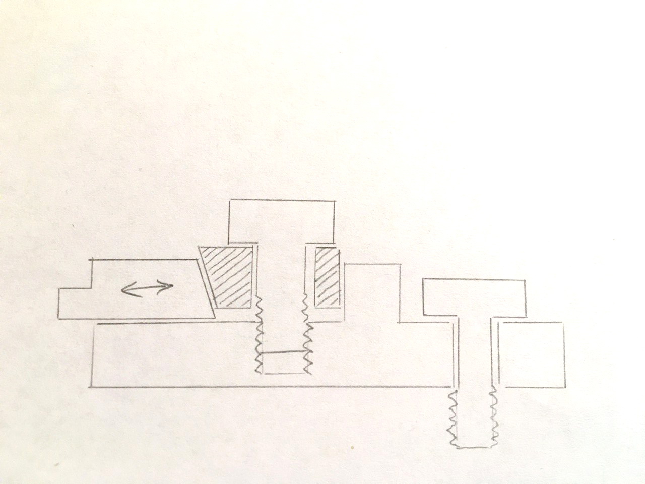 любопытно - зажимы на этом принципе существуют и на этом форуме описаны тоже - но там специальной формы пазы под винты в потай. а тут просто за счет люфта в отверстии.. не мудрствуя лукаво.