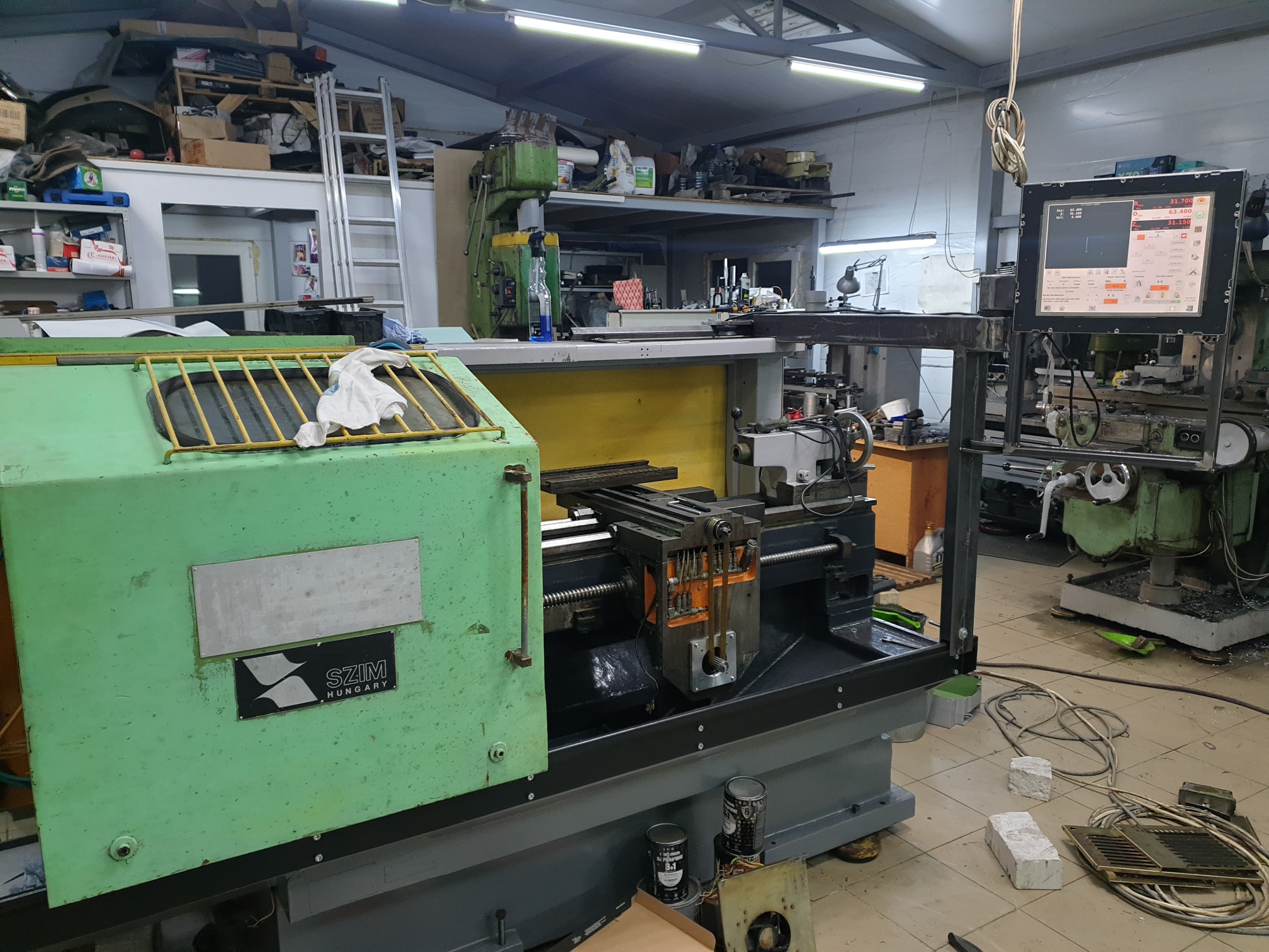 Ходил думал как поставить станок, места мало и хочется чтобы оба, и УТ и EEN рядом паралельно лицом к лицу. Пока заготовочку на ручном торцуешь автомат за спиной шуршит сам, повернулся, переставил.