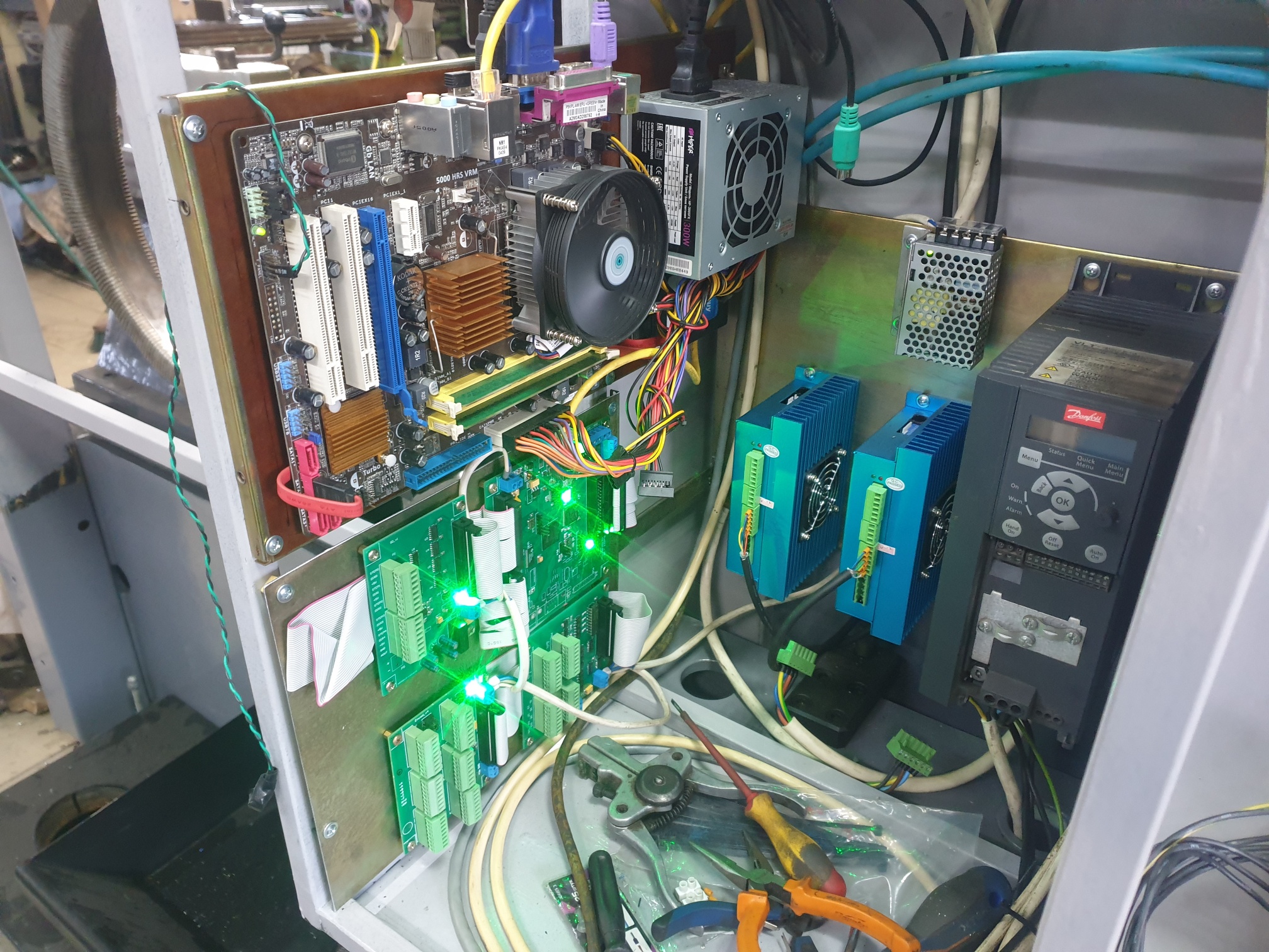 В общем собрал всю электрику, протянул проводку, подключил шпиндель к частотнику, разобрался с маслостанцией, системой смазки и переключением передач гидравликой.